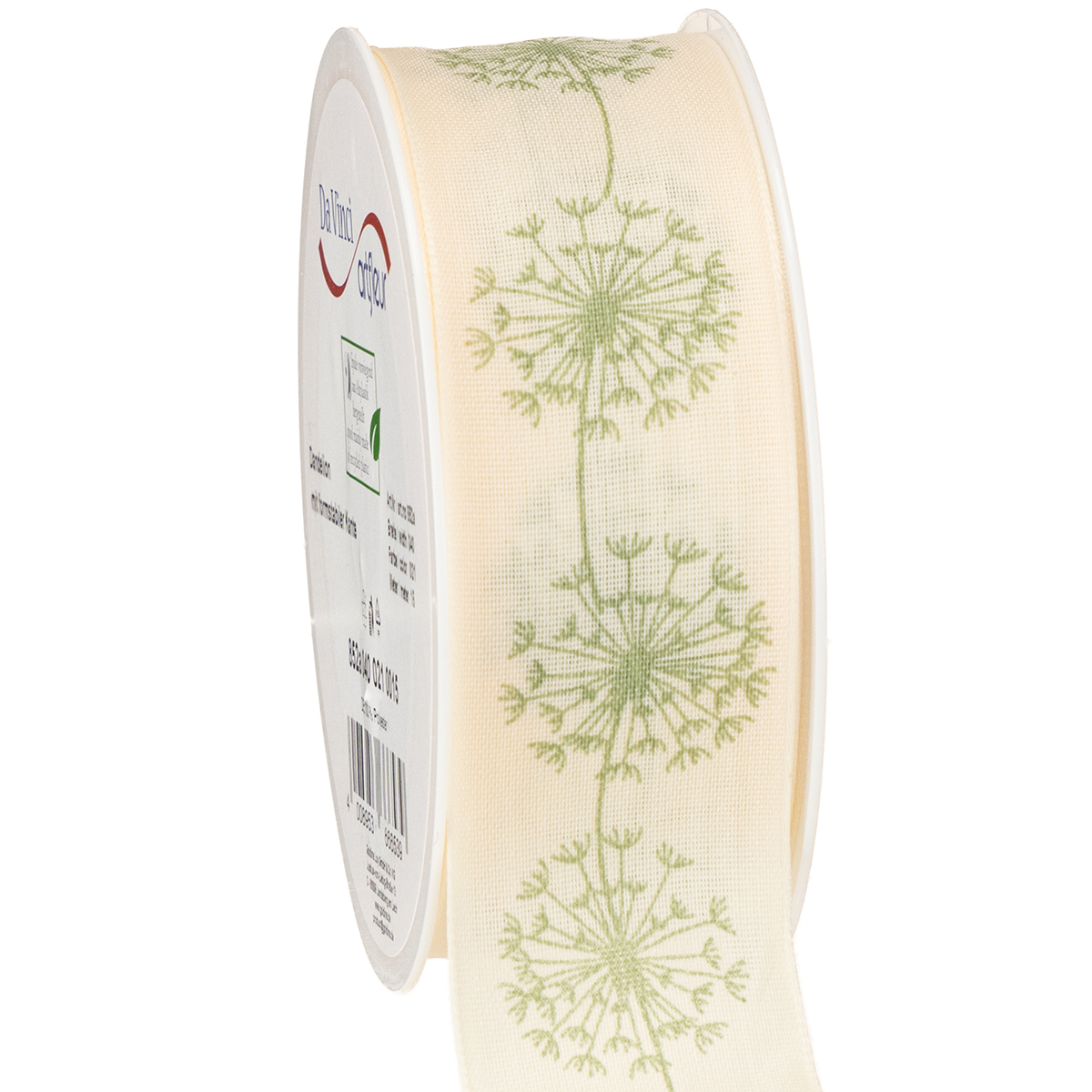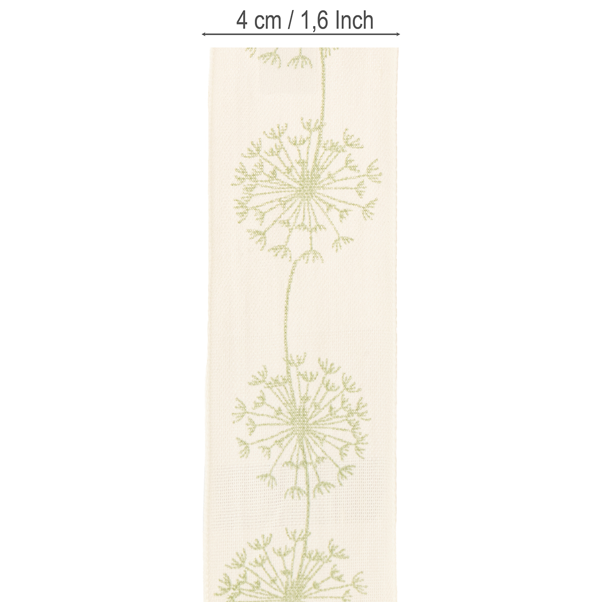 Decorative ribbon, gift ribbon, dandelion design, cream, 40mm, 15m