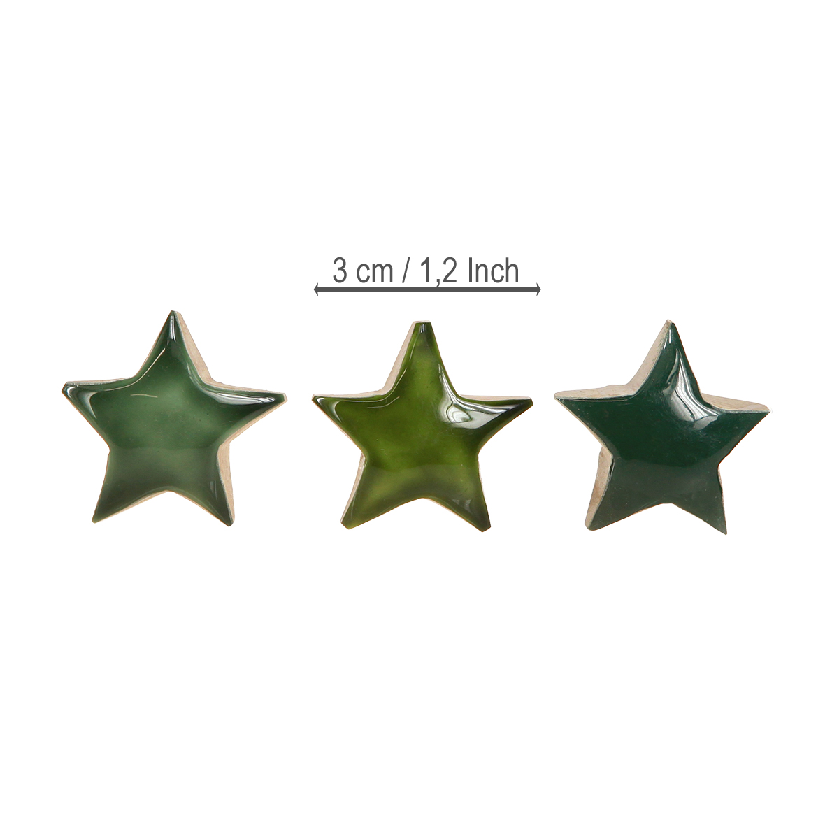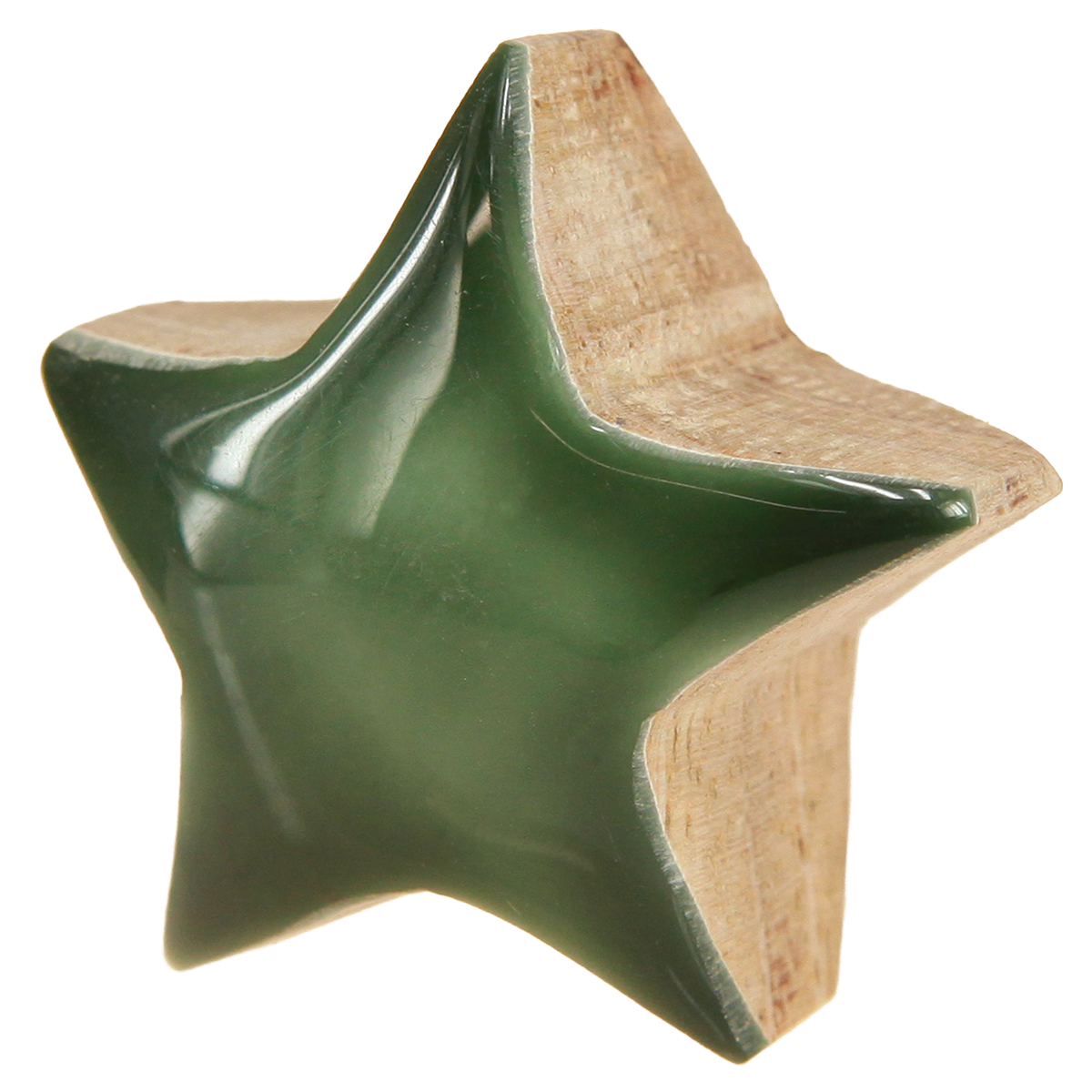Our decorative stars made of green wood are the perfect addition to your festive table decorations. These versatile wooden stars are ideal as scattered decorations and instantly add a festive sparkle to your table or sideboard. Painted on the front in three shades of green, the warmth and naturalness of the natural mango wood creates an inviting Christmas atmosphere. The sheen of the green surface reflects the light and underlines the elegance of your Christmas decorations. Whether for table decorations at Advent dinner or as a highlight on your Advent wreath, these wooden stars are a must-have for anyone who appreciates subtle yet effective decorations. Be inspired by the natural beauty and creative flexibility offered by our wooden stars and decorate your living spaces with natural charm.