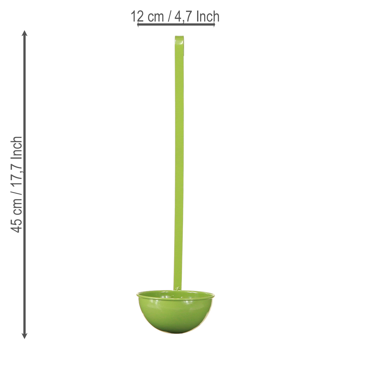 What makes a hanging decorative ladle so special? This charming green soup ladle adds a special touch to any room. Whether in the kitchen, living room, or even the garden – it's guaranteed to catch everyone's eye. At 45 cm long, it's a striking yet stylish accessory that combines classic functionality with modern elegance. Discover how a simple metal ladle can become a real eye-catcher! Looking for something rustic to brighten up your everyday life? This green decorative ladle scores points with its original design and practical uses: whether as a herb holder in the kitchen, a decorative flower pot holder, or a rustic wall decoration in the living room. The vibrant green color combines freshness and naturalness. Perfect for anyone who loves something special!