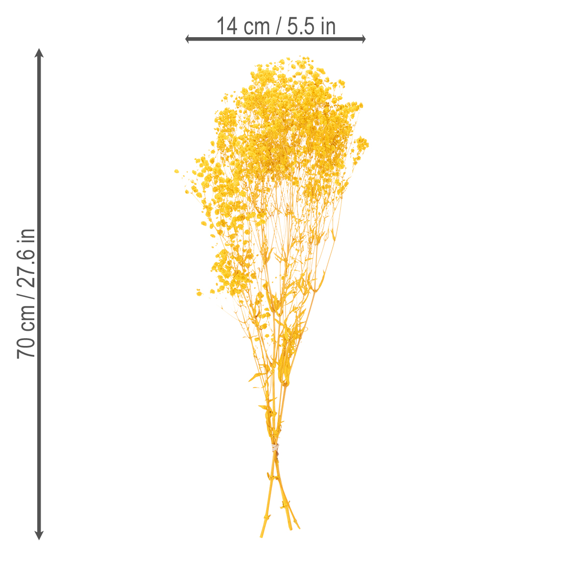 Standing 70 centimeters tall and with a diameter of approximately 14 centimeters, this dried baby's breath bouquet is large enough to attract attention, yet subtle enough to be combined in a variety of ways. Make it the centerpiece of your spring décor, create a stylish dried flower table arrangement, or place it in your favorite vase for year-round display.