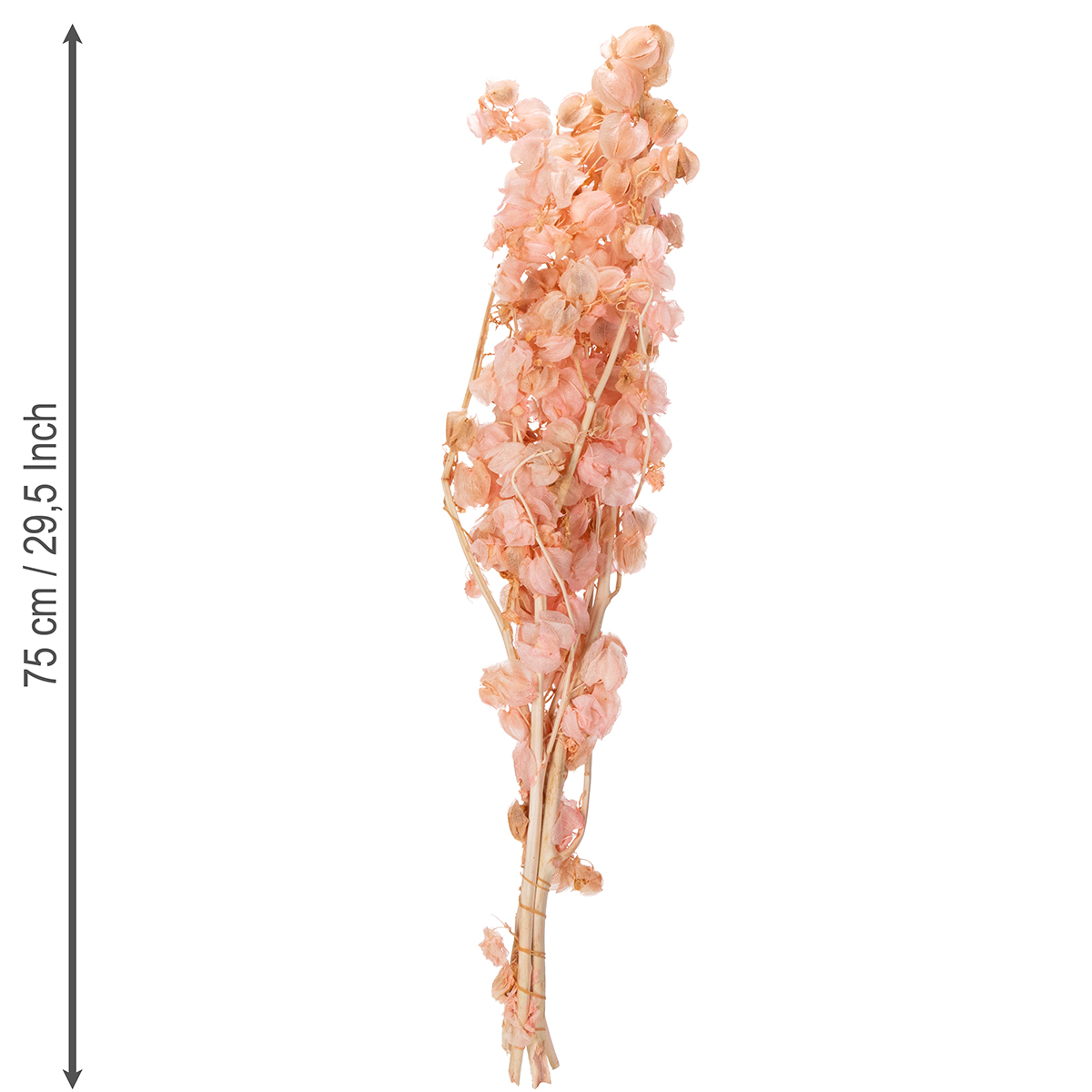 Thanks to its impressive height of 75 cm and the fresh combination of pink and natural tones, the stem dried flower is not only a highlight in any dried flower bouquet, but also a versatile standalone piece. Its delicate appearance lends a charming, romantic touch to any room. What's more, it's incredibly practical – no watering, no wilting, and perfectly combinable with other dried flowers or decorative elements such as vases, candlesticks, or fairy lights.