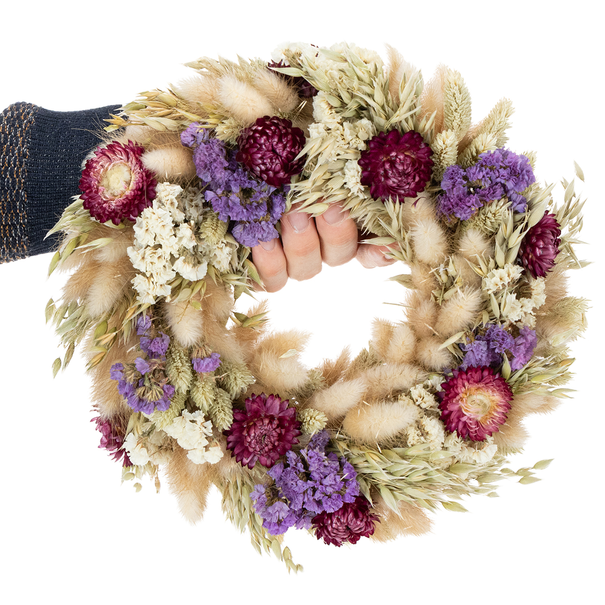 Care is particularly simple: Gently tap the wreath to remove dust and avoid direct sunlight to preserve the colors. This way, your festive dried flower decoration will always be a real eye-catcher!