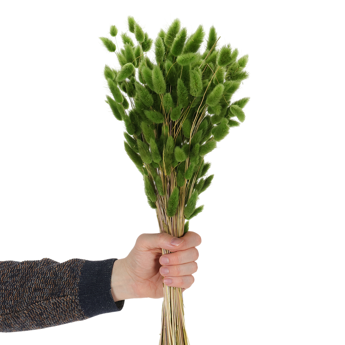 This dried Lagurus grass in olive green adds a touch of vibrancy to any boho-style dried flower arrangement. The bright green of this dried grass is one of the trendiest colors you'll see in a wide variety of dried flower arrangements.