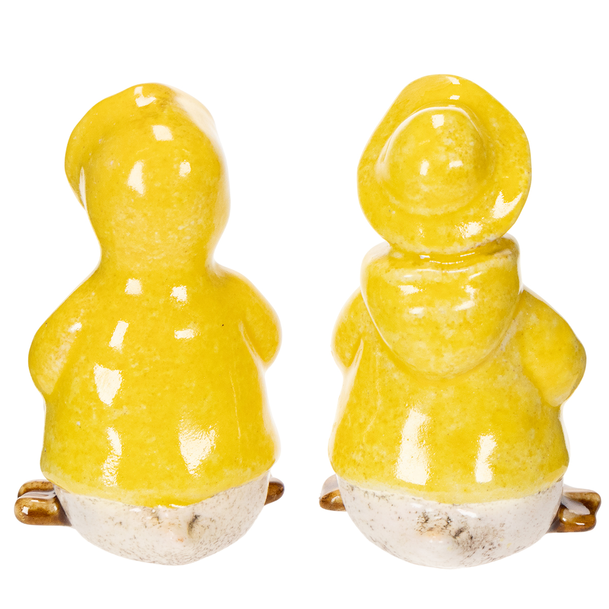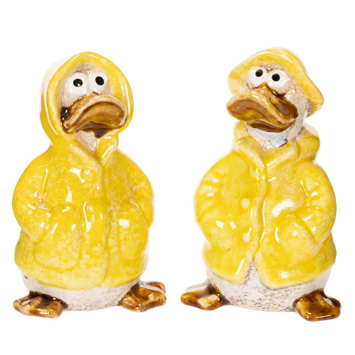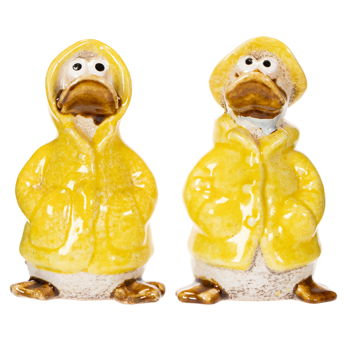 Ceramic duck figurines in yellow raincoats – fun spring and summer decorations