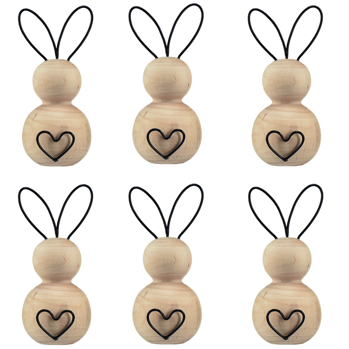 Easter bunnies wood metal in natural black H10.5cm 6 pcs