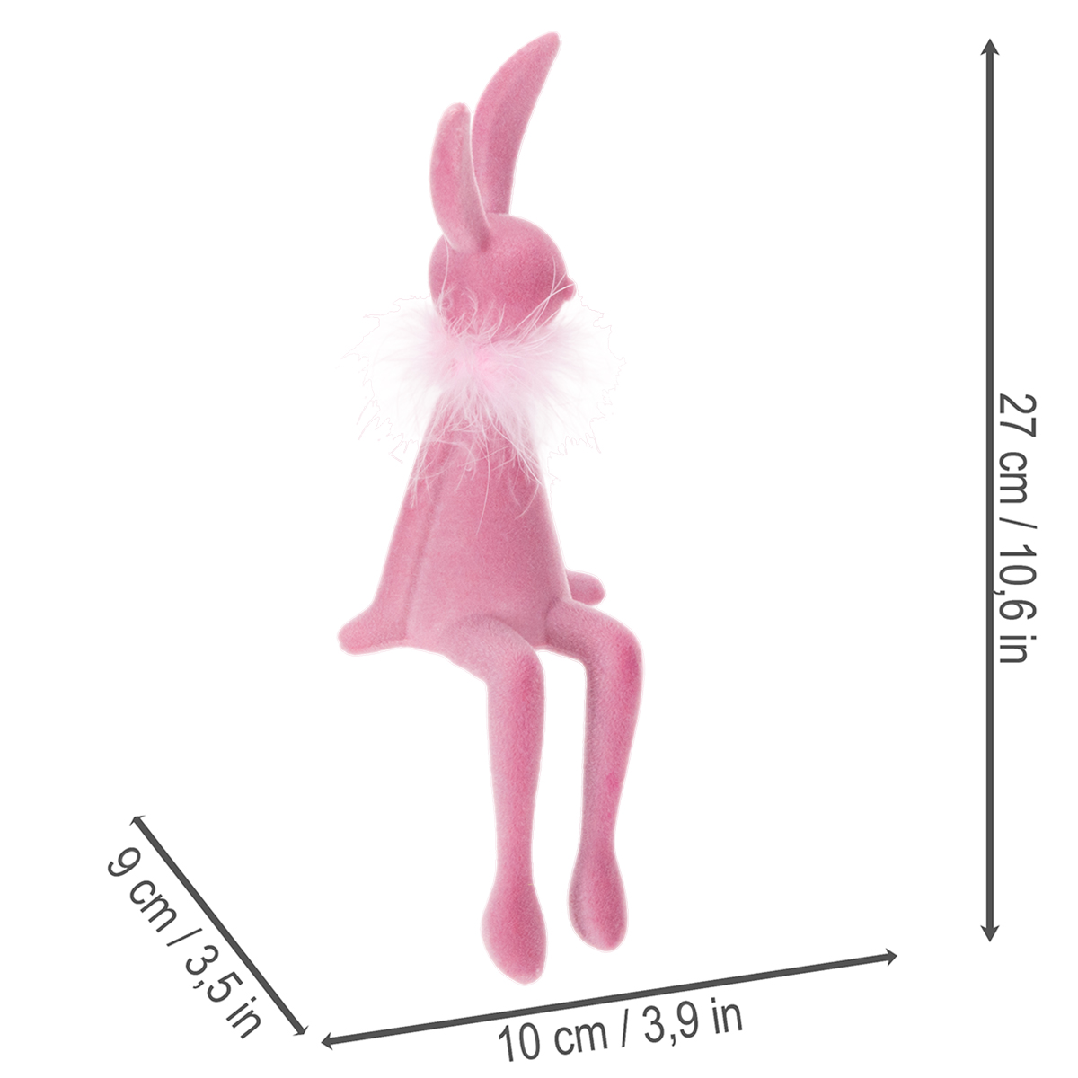 Our enchanting Easter bunny figurines impress not only with their cute appearance but also with their versatility. They add a delightful touch to windowsills, mantelpieces, or even a cozy living room shelf. Their modern design, combined with delicate shades of pink and light rose, makes them a perfect fit for a springtime setting or a Scandinavian-inspired style. With their feather boa and charming dangling legs, they lend your decor a touch of elegance without appearing cluttered.