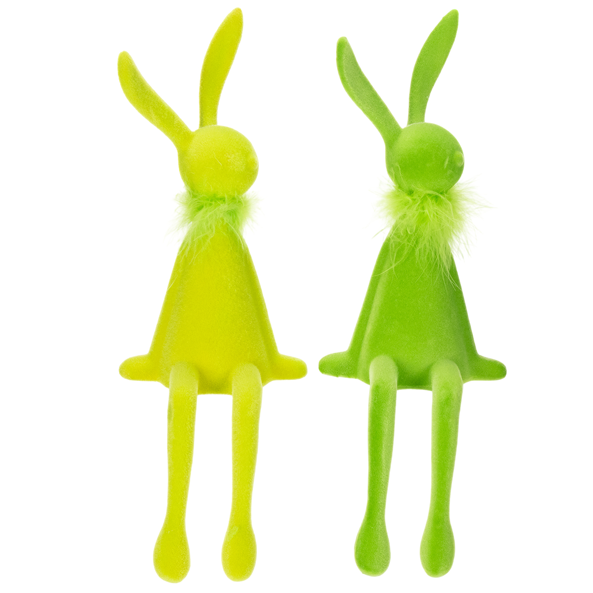 Want to transform your home into a festive spring wonderland? These enchanting Easter bunnies, perfect for hanging on shelves, will do the trick in no time! This duo in fresh shades of green not only brings Easter cheer to your home but also brightens up any living room. Whether on a shelf, a windowsill, or as a centerpiece on the dining table, these velvety flocked decorative figures lend your decor a modern and playful touch. And the best part? The delicate feather boa adds that special something – a real eye-catcher!