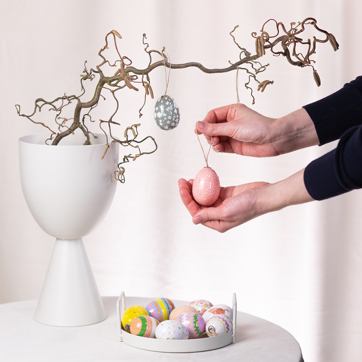Easter is just around the corner, and with it comes the perfect time to brighten up your home with fresh spring colors. Our decorative Easter egg ornament set will create a harmonious atmosphere that will delight both children and adults. Just imagine: a festively decorated Easter tree adorned with these intricately detailed Easter eggs. Each ornament tells a little story – from enchanting patterns to a vibrant array of colors. And the best part? With their natural hangers made of durable natural fiber, the eggs are not only easy to hang, but they also add a charming touch to the overall display.