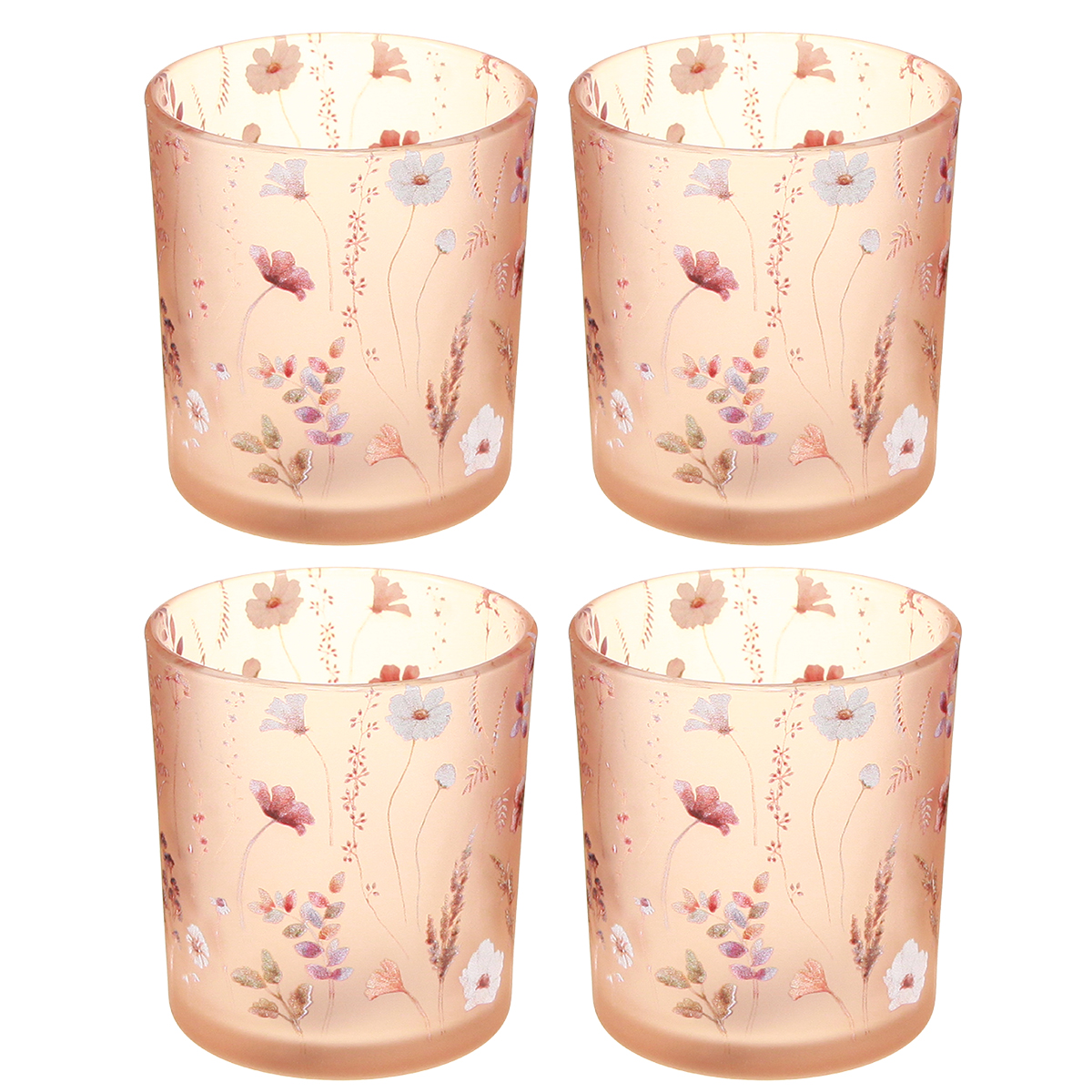 This decorative floral lantern is more than just a simple tealight holder. Measuring 8 cm in height and 7.5 cm in diameter, it's the perfect size for standard tealights and smaller pillar candles. The high-quality glass gives the lantern sturdiness, while the soft pink and pastel shades add a touch of romantic charm. The delicate floral patterns, reminiscent of wildflower meadows, blend beautifully into the popular modern country style or a dreamy boho decor. Thanks to its versatility, this lantern is a must-have for almost any occasion: from summer garden parties and festive dinners to weddings or simply as a pretty everyday decoration. It brings a pleasant brightness and warmth to any setting – perfectly combined with other natural materials like wood or linen. For an even more personal touch, fill the glass with additional decorative elements such as scattered flowers, small seashells, or sand. It makes a stunning centerpiece for a table or shelf!