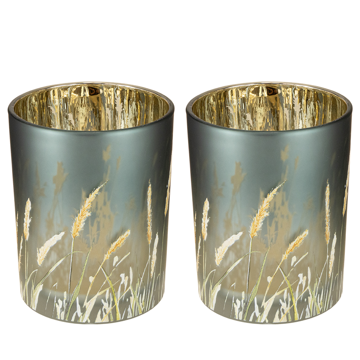 Elegant decorative lantern with grass motif for cozy living accents, 12.5cm, 2 pieces.