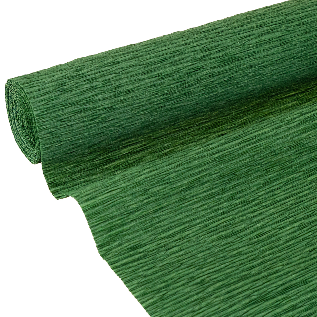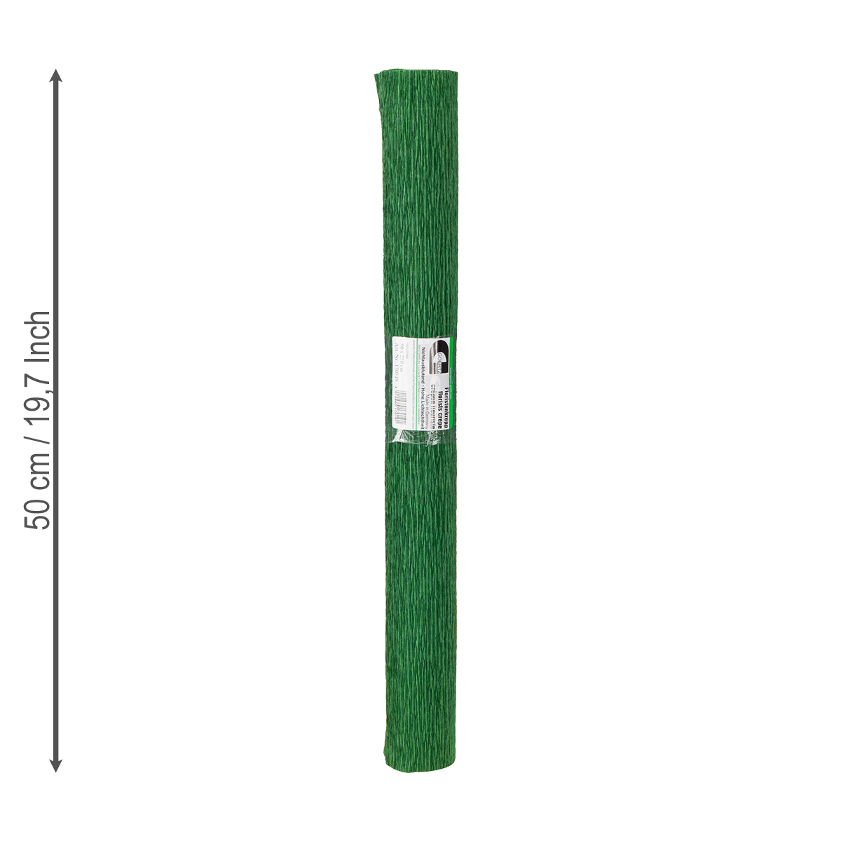 The dark green floral crepe paper has approximately the dimensions 50 x 250 centimeters and is delivered as a roll. The grammage is about 128 grams per square meter and the weight about 160 grams.