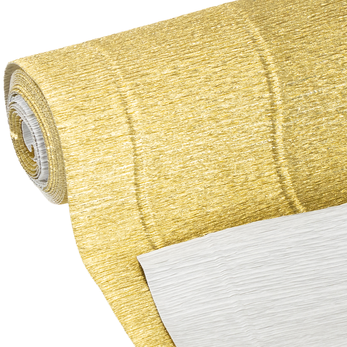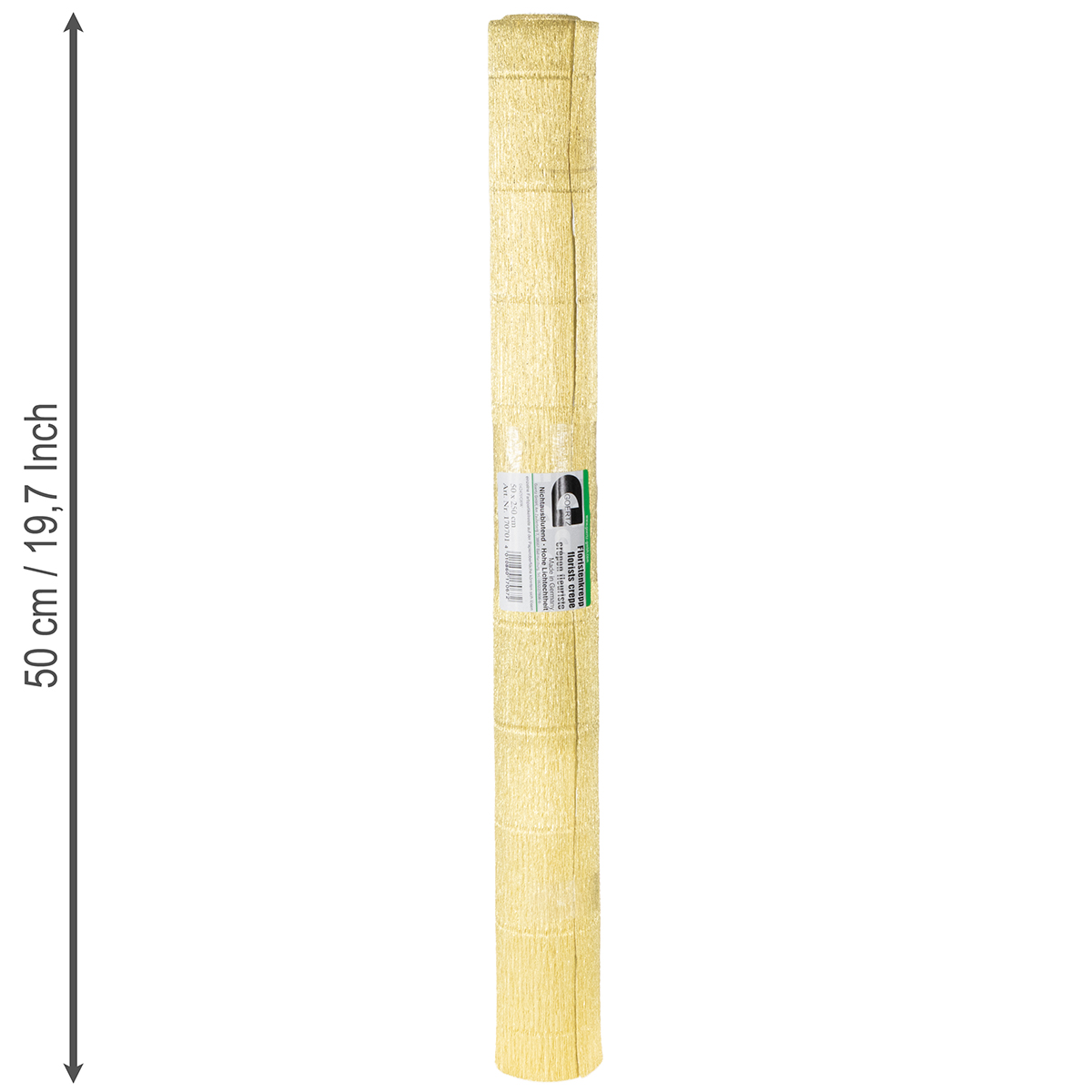The florist crepe paper in gold is wound into a roll and has a white inside. With a size of about 50 x 250 centimeters, you can refine both large and small decorations.