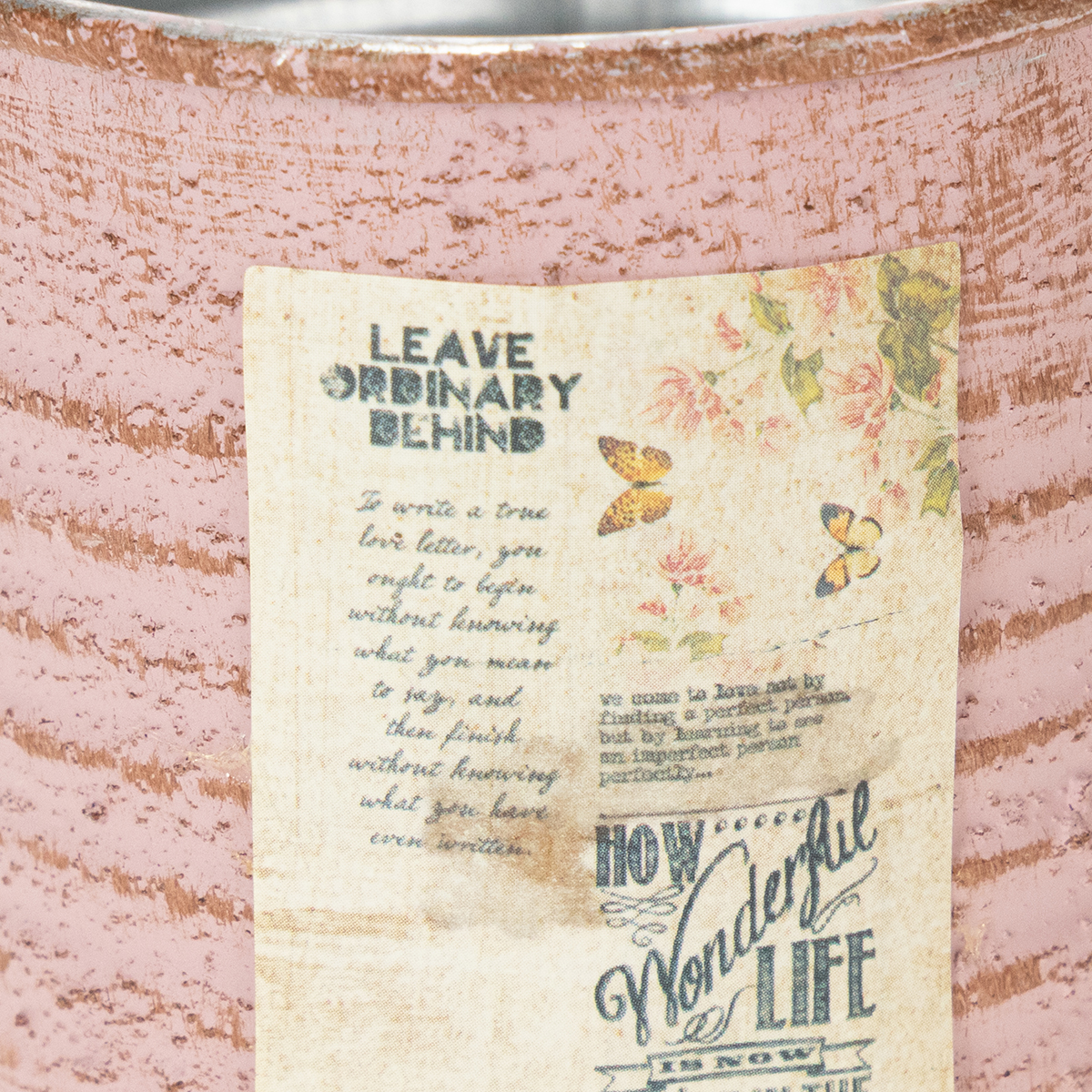 As an original flower pot, this old pink decorative box in plant decoration convinces with nostalgic details! The inside of the planter is simply silver. The outside, on the other hand, oozes vintage charm: the delicate pink layer of paint was painstakingly brushed - this is how the light brown rust color comes to light on the characteristic ribs of the tin can. Painted rust spots and a vintage garden sticker complete the well thought-out shabby chic.