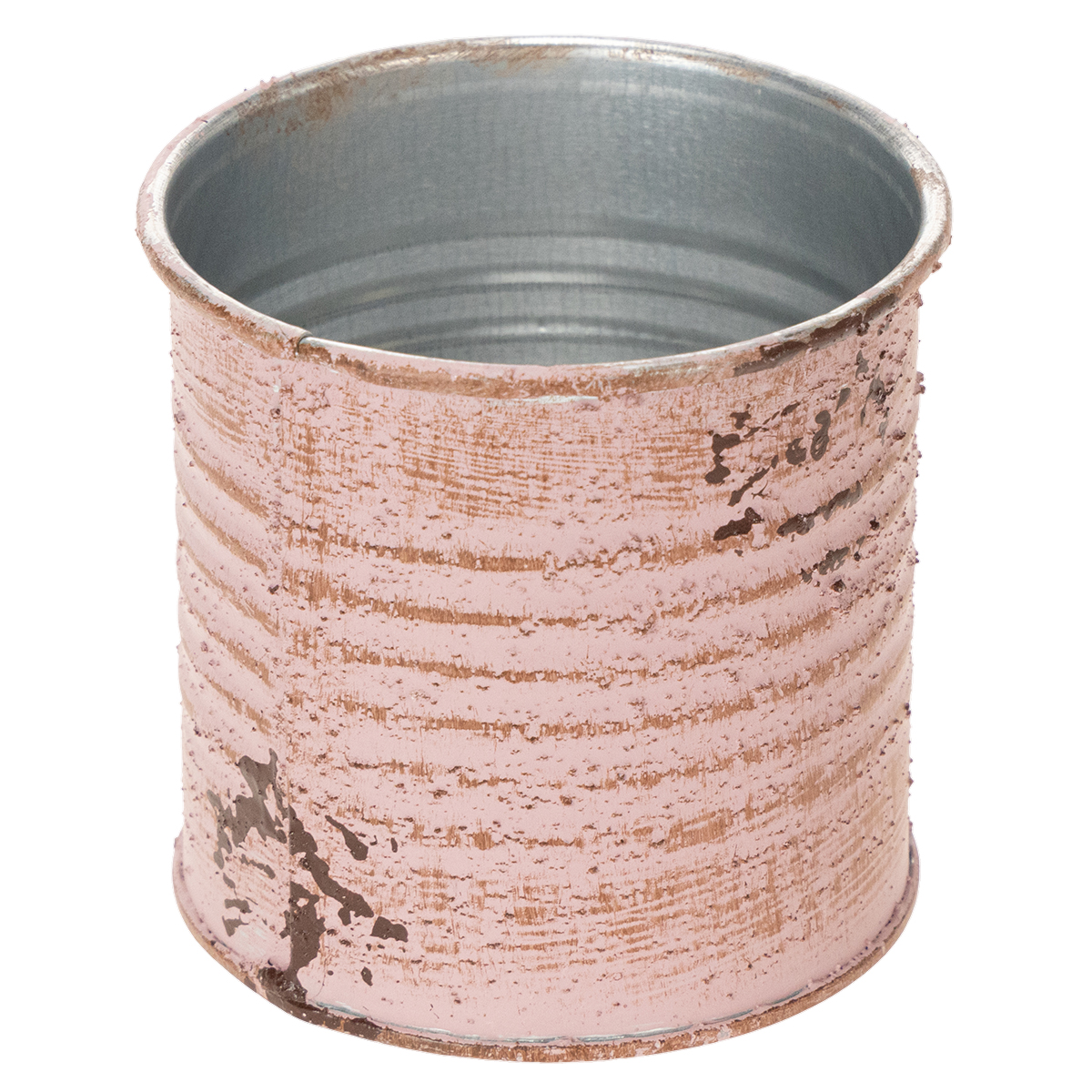 Flower pot decorative tin round antique rose metal planter Ø8cm H7.5cm