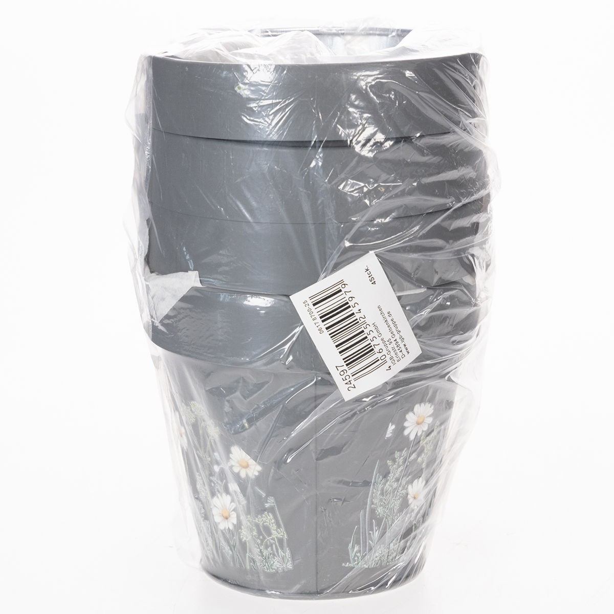 This decorative flower pot with a daisy motif will bring a breath of fresh air to your interior design. Whether on the windowsill, a living room shelf, or a desk – its subtle gray design blends harmoniously into any setting. The charming floral motif adds a touch of nature and joie de vivre to any room. Four pots in a set – so you can create several inviting oases. Practical and lightweight, made of sturdy metal, this flower pot is not only beautiful but also surprisingly versatile. A small highlight that combines style and functionality!