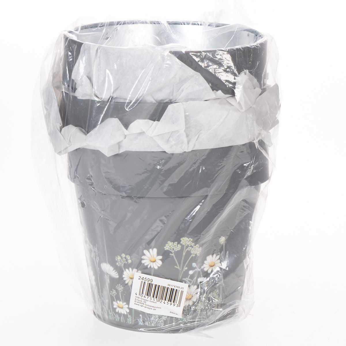 A flowerpot that evokes the feeling of a summer meadow – doesn't that sound dreamy? With its enchanting wildflower design, this pot brings a touch of nature right to your balcony or patio. The delicate blossoms, harmoniously combined with the gray metal surface, exude a simple elegance that complements both modern and classic settings. Whether you're planning a vibrant balcony display or an elegant indoor plant arrangement, these flowerpots will showcase your plants perfectly. And the best part? They come in a convenient set of three! Ideal for combining different plant varieties. A versatile little gem that's not only beautiful but also incredibly practical.