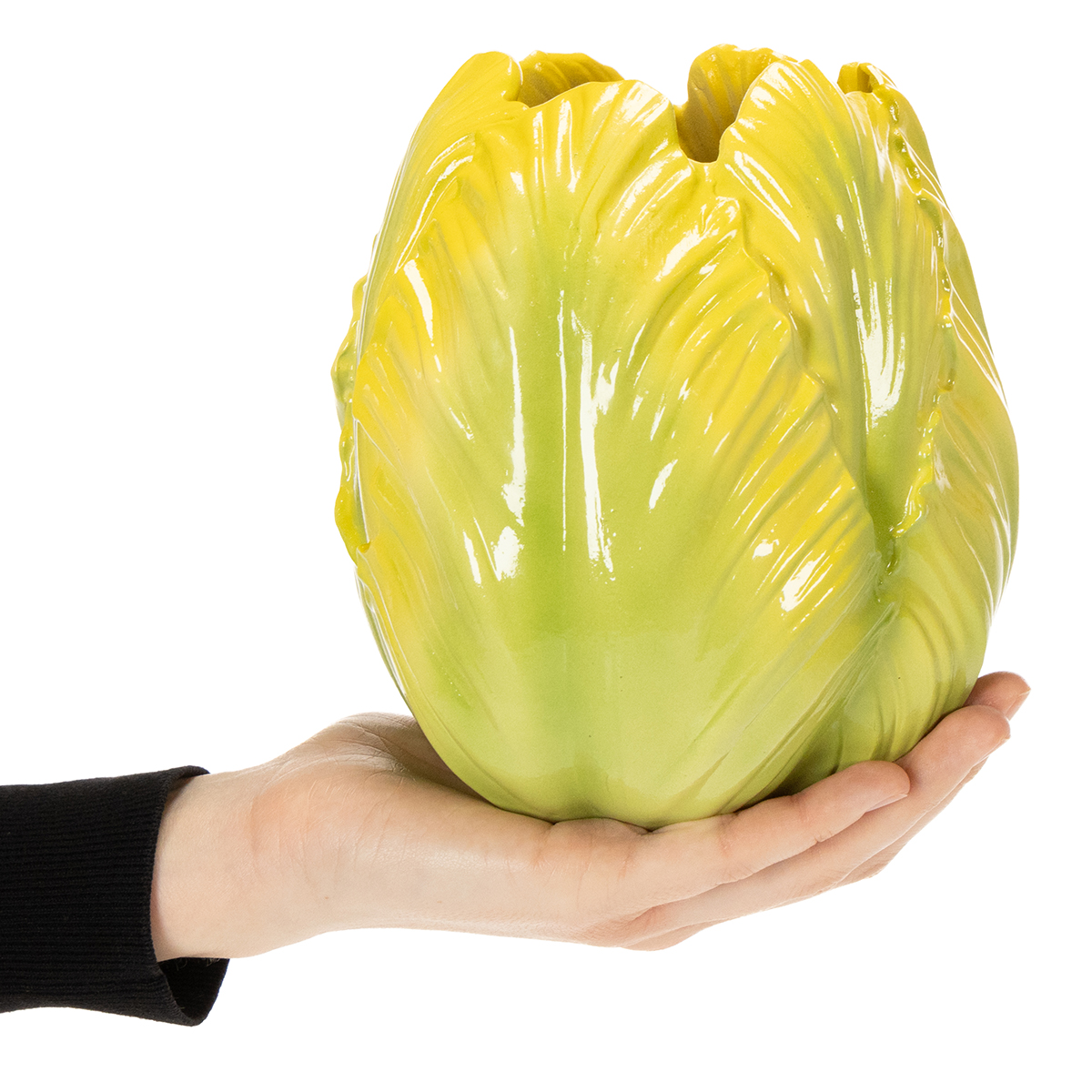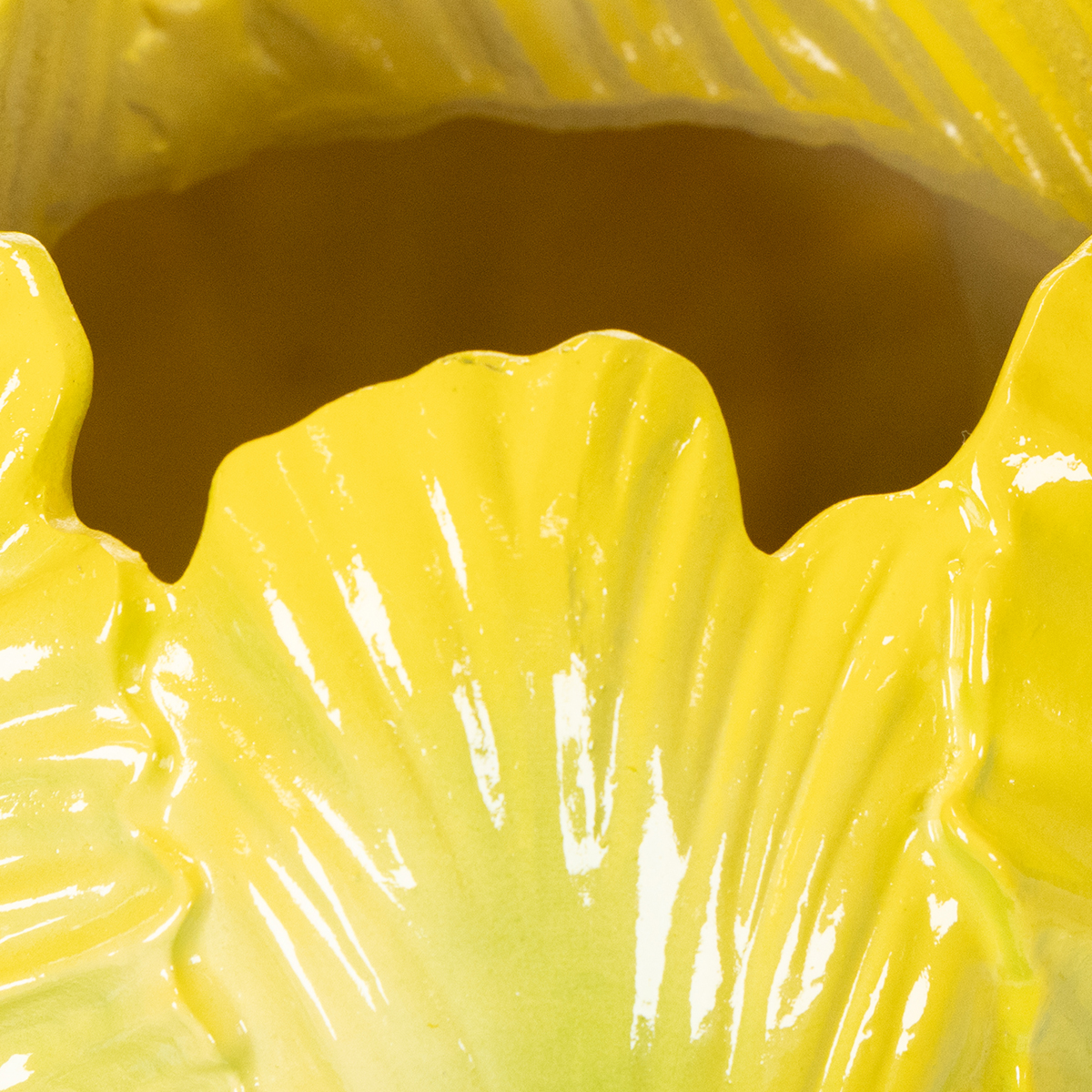 This vase is more than just a home for flowers – it's a design piece that blends harmoniously into any living space. Its striking shape is reminiscent of a blooming tulip, with delicately sculpted, fanned-out petals in a vibrant yellow and green gradient. This gives the vase a natural yet modern look. Practical: made of polyresin, the vase is durable and easy to care for. Whether you arrange fresh tulips, fragrant hyacinths, or delicate branches, the vase provides a harmonious setting. It looks particularly impressive when combined with other accessories in the same color palette, such as pastel-colored napkins or candles with a subtle spring fragrance. Tip: This vase set also makes an excellent gift. Presented with a bouquet of colorful flowers, it's guaranteed to make an impression. For a more understated look, you can fill the vase with dried flowers or artificial flowers in floral foam, or even plant something else. This way, you have a stylish decoration for the whole year.