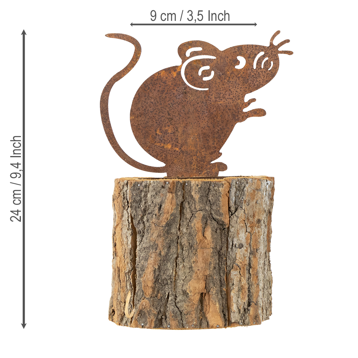 Product name: Flowerpot wooden planter bark and mouse rust H24cm