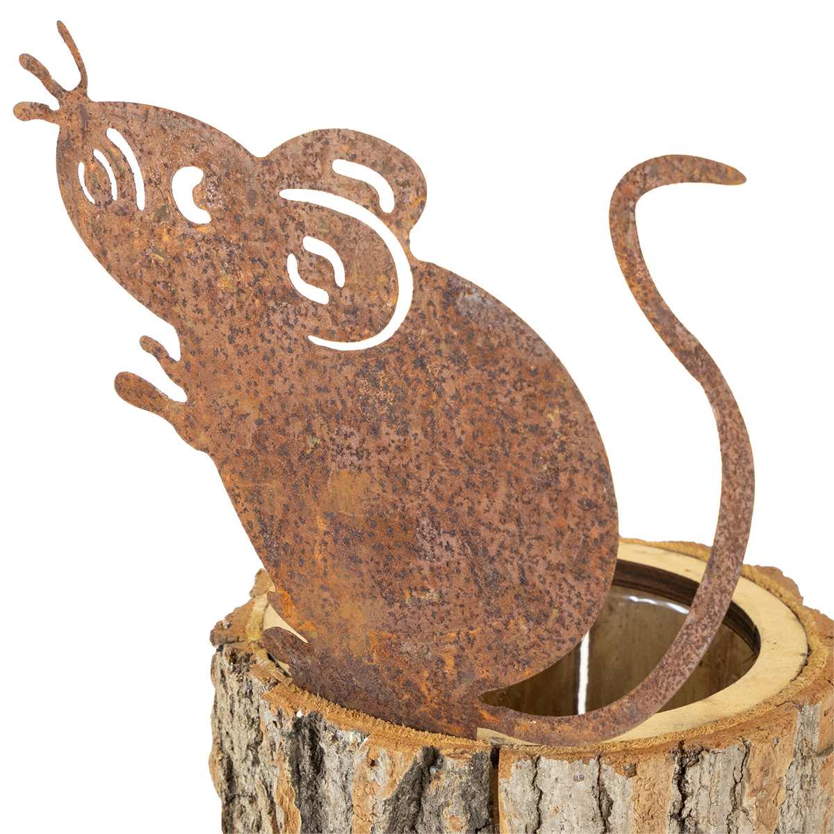 Flowerpot wooden planter bark and mouse rust H24cm
