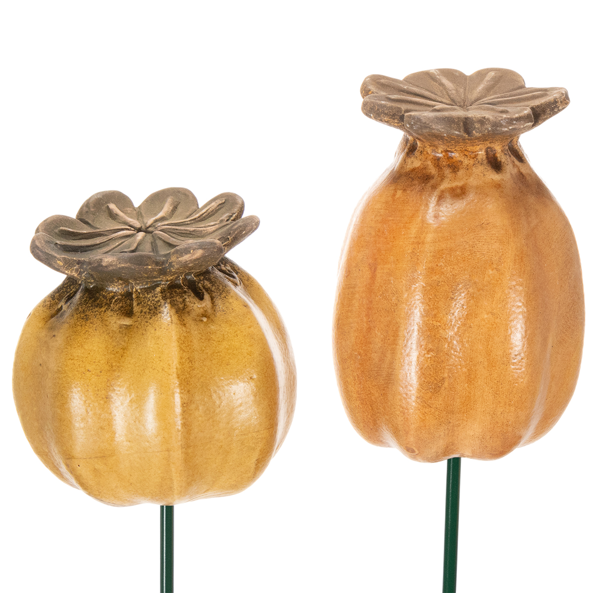 Garden stake poppy seed pod for stylish garden design, flower bed or balcony, 60cm, 2 pieces