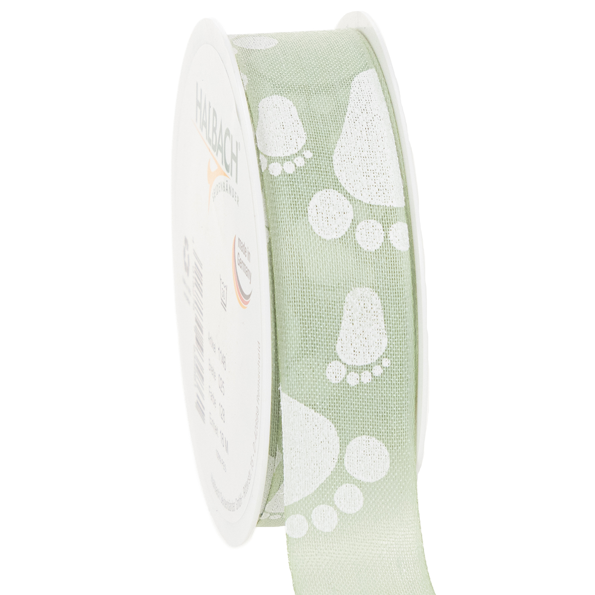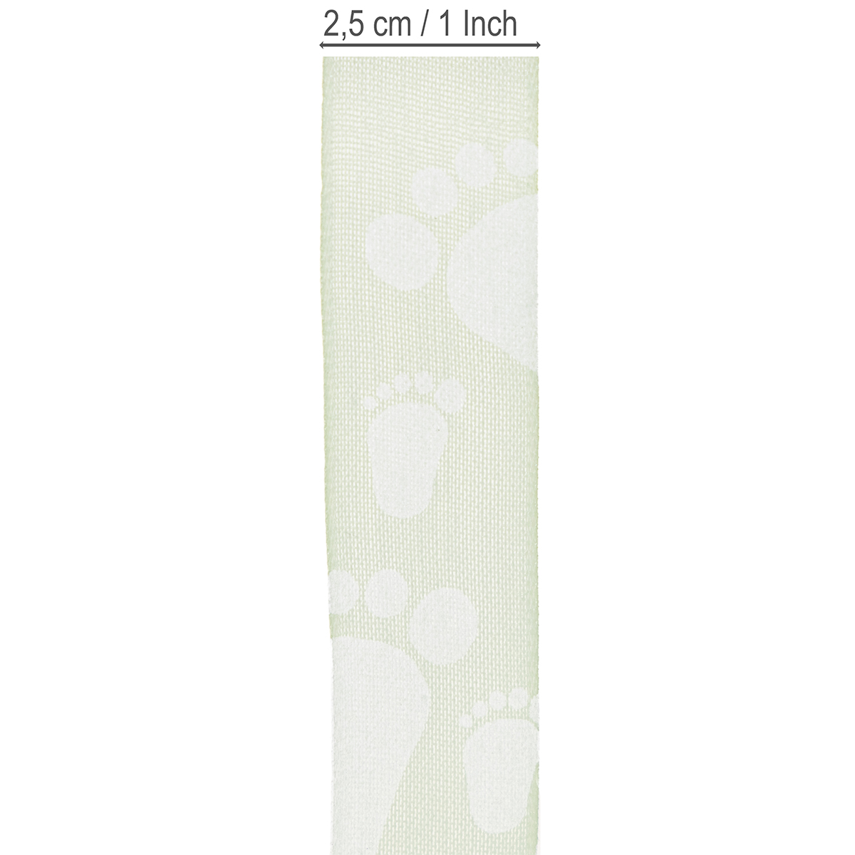 Gift ribbon baby feet decoration christening green 25mm 16m