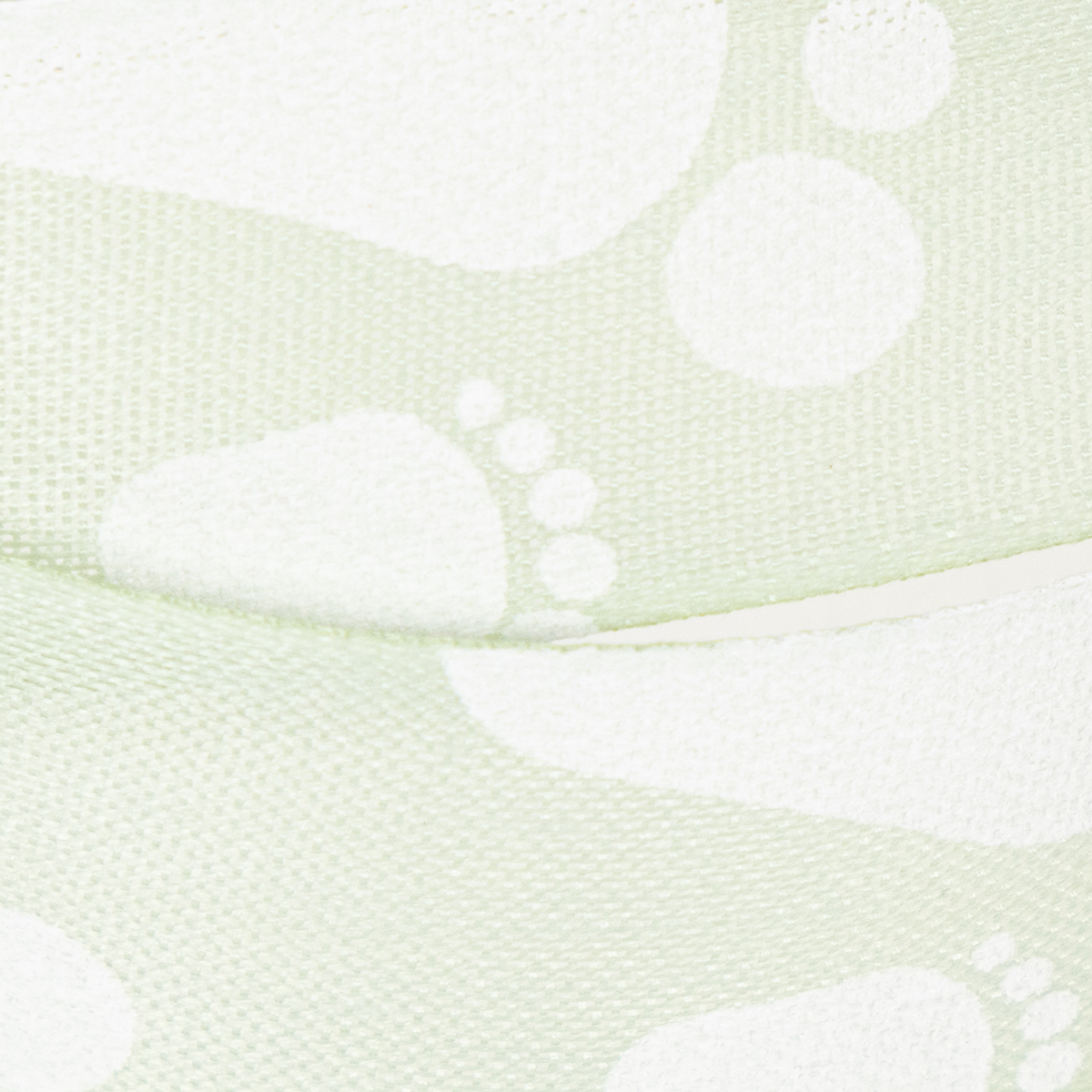 The light, pastel green background of the fabric ribbon is decorated with smaller and larger footprints. In white, the baby feet form a beautiful contrast to the color of the decorative ribbon and skilfully capture the theme of the happy event.