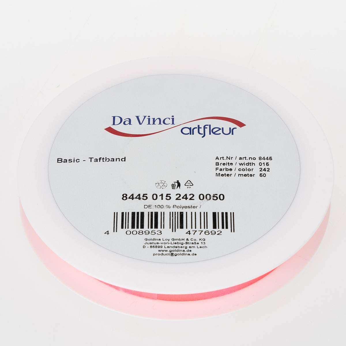 - Gift ribbon in intense neon pink for fresh, eye-catching accents