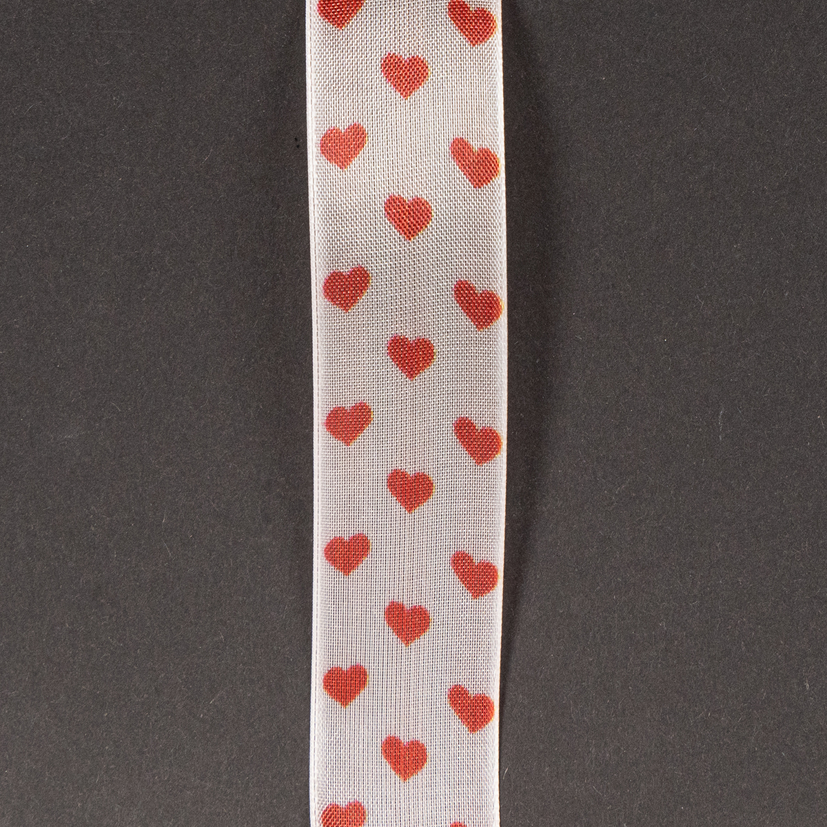 Gift ribbon with hearts, ideal for creative packaging ideas and personal gifts, 2.5 cm wide, 15 m long