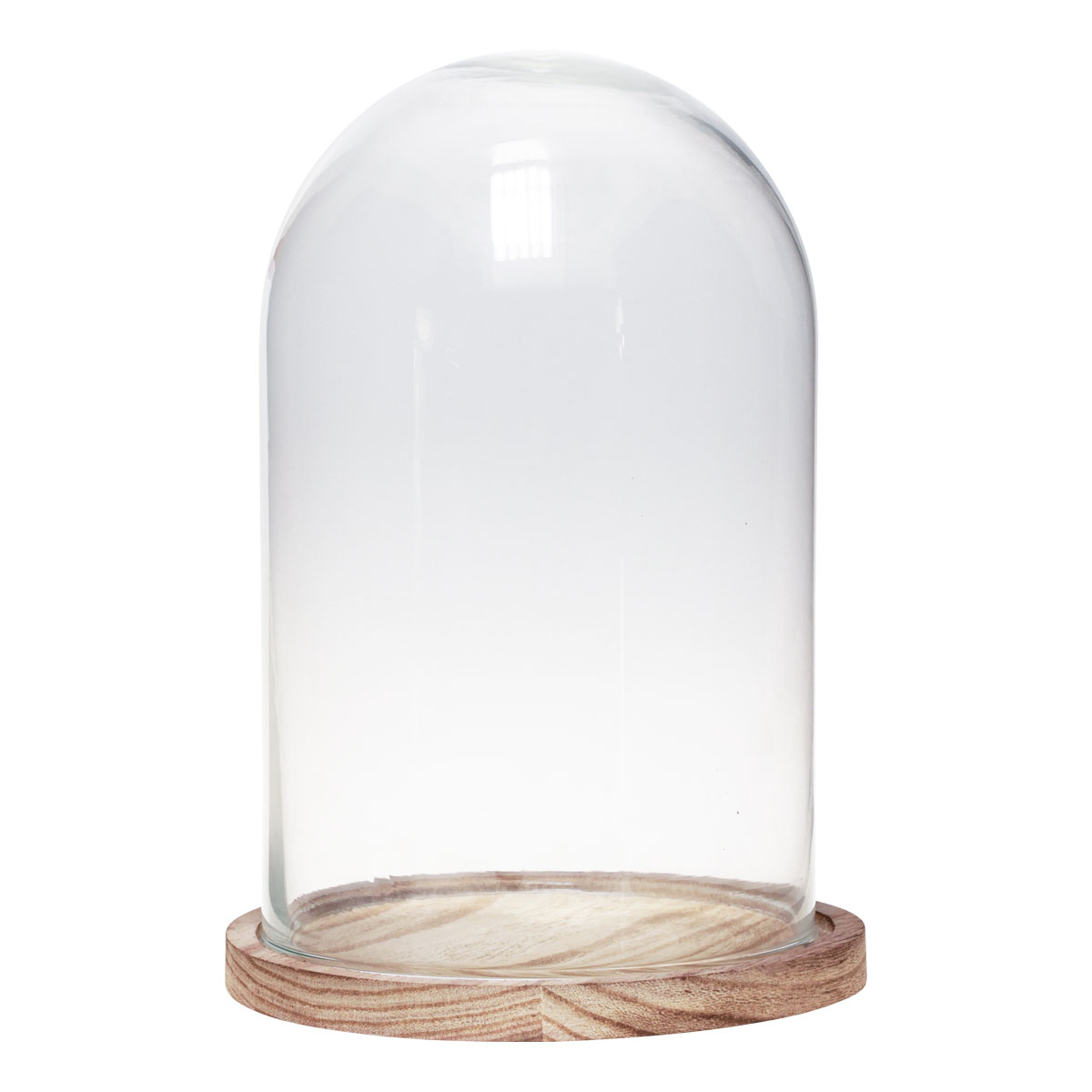 Glass bell with wooden plate glass decoration Ø17cm H25cm