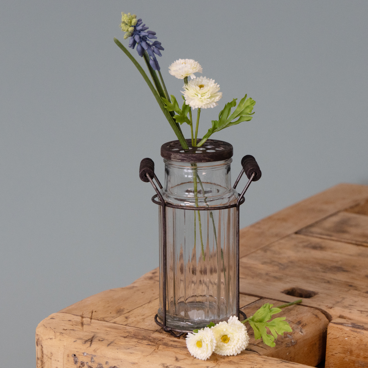 Vintage glass bottle metal basket – Practical and charming