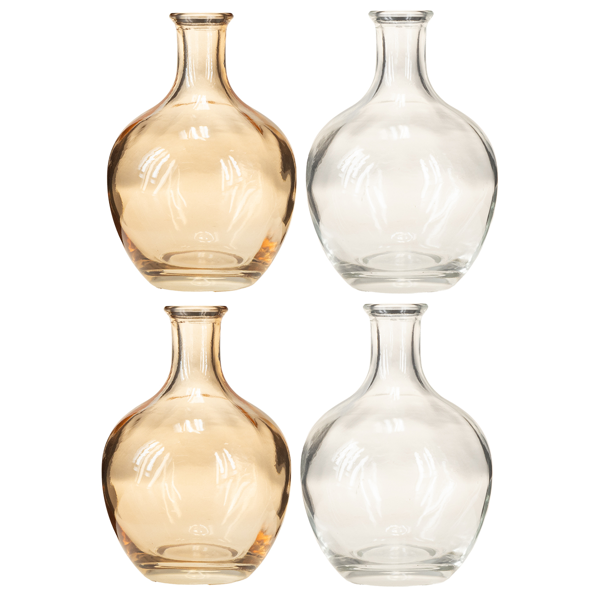 Glass bottle mini vase amber and clear Ø7.5cm H11cm 4pcs