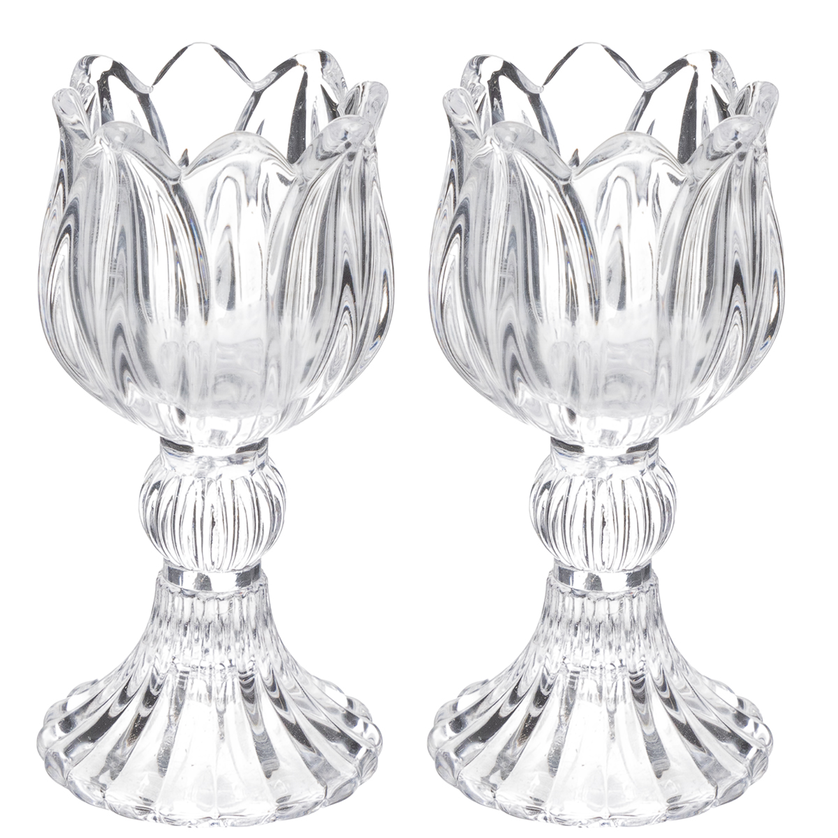 Glass candle holders with a floral pattern for elegant table decoration, 14cm, 2 pieces