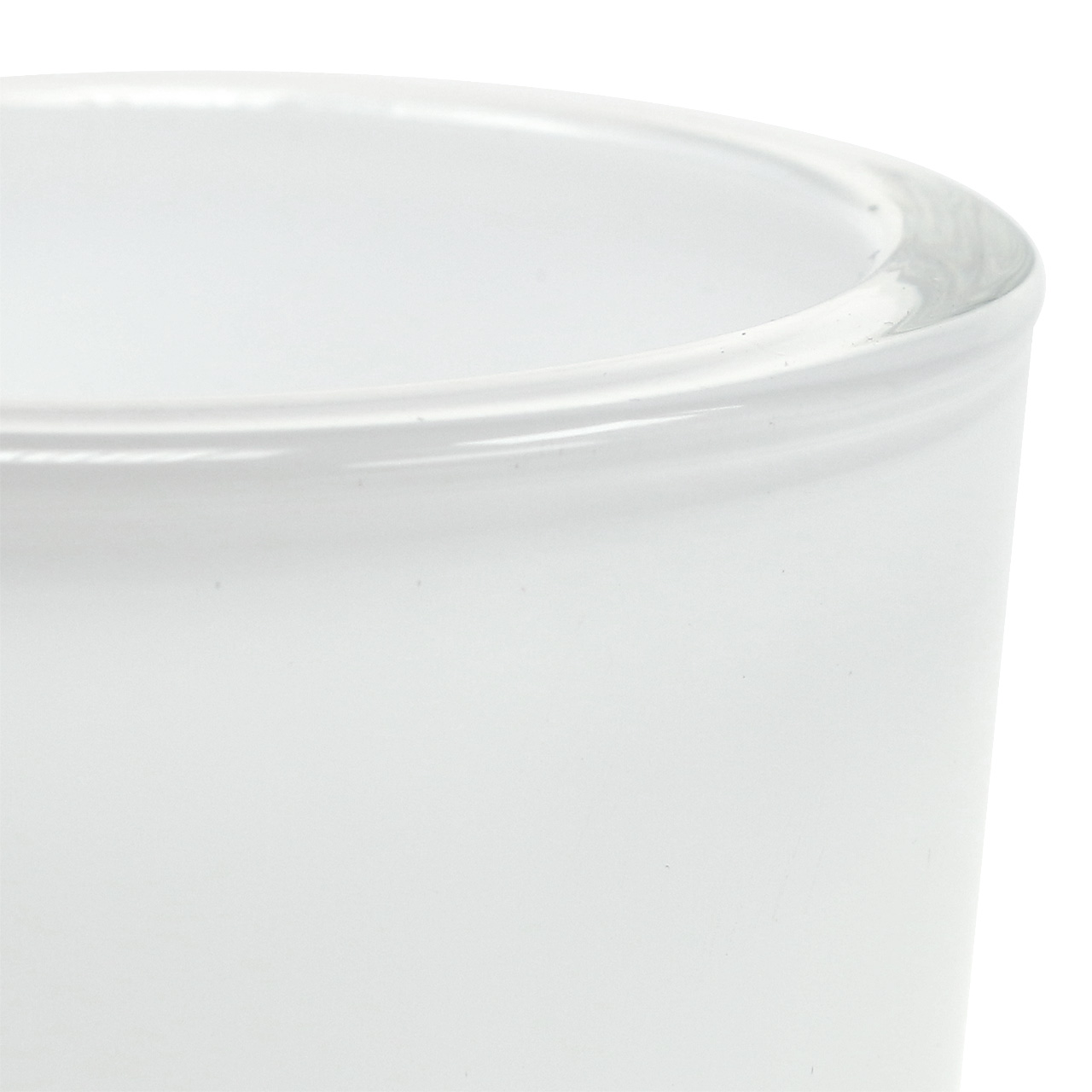 The total diameter of the white glass pot is about 7.8 centimeters; The opening diameter is about 6.2 centimeters and the diameter of the footprint about 5.5 centimeters. In height, the glass flower pot measures about 8 centimeters.