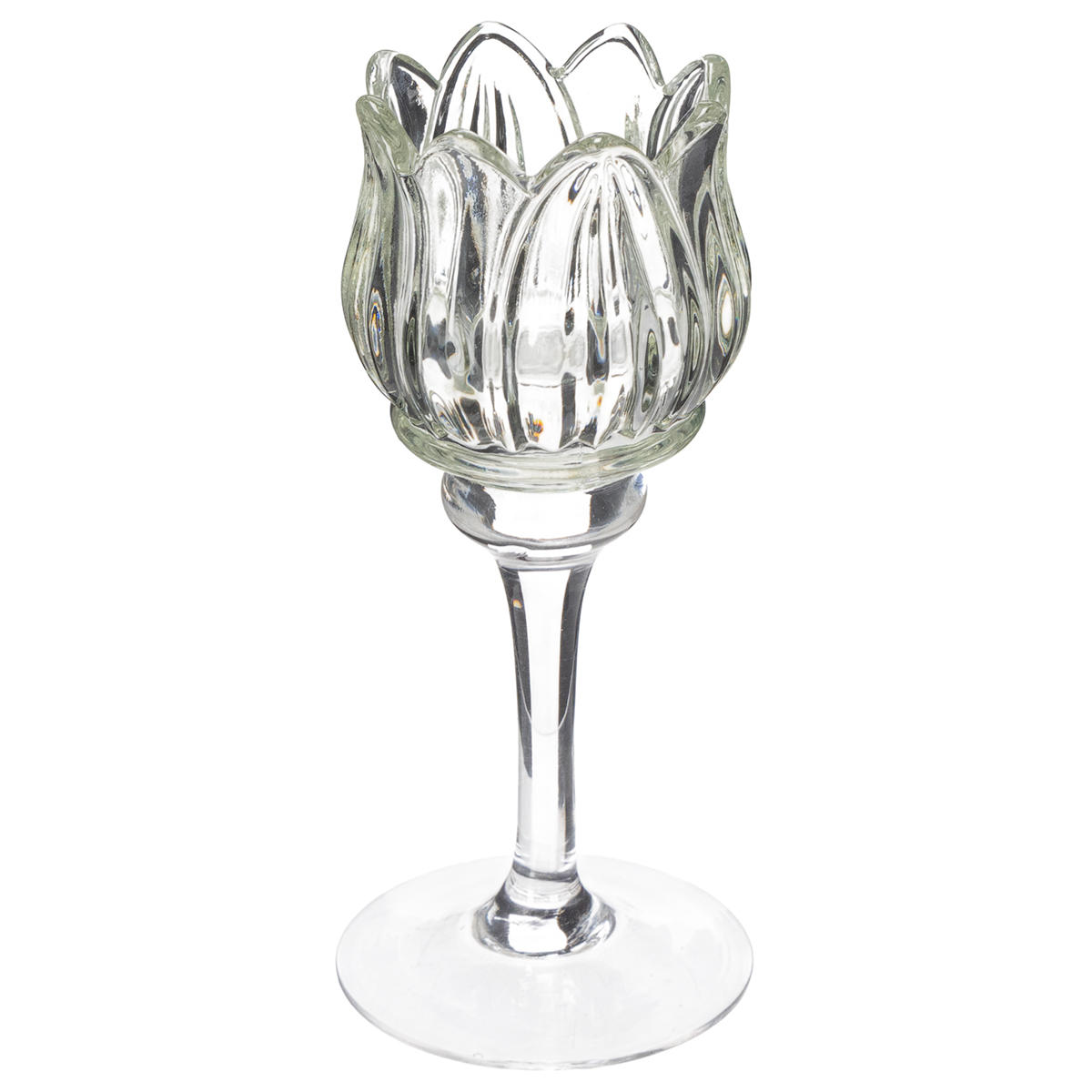 Glass tealight holder, decorative flower shape for a stylish ambience, 17cm