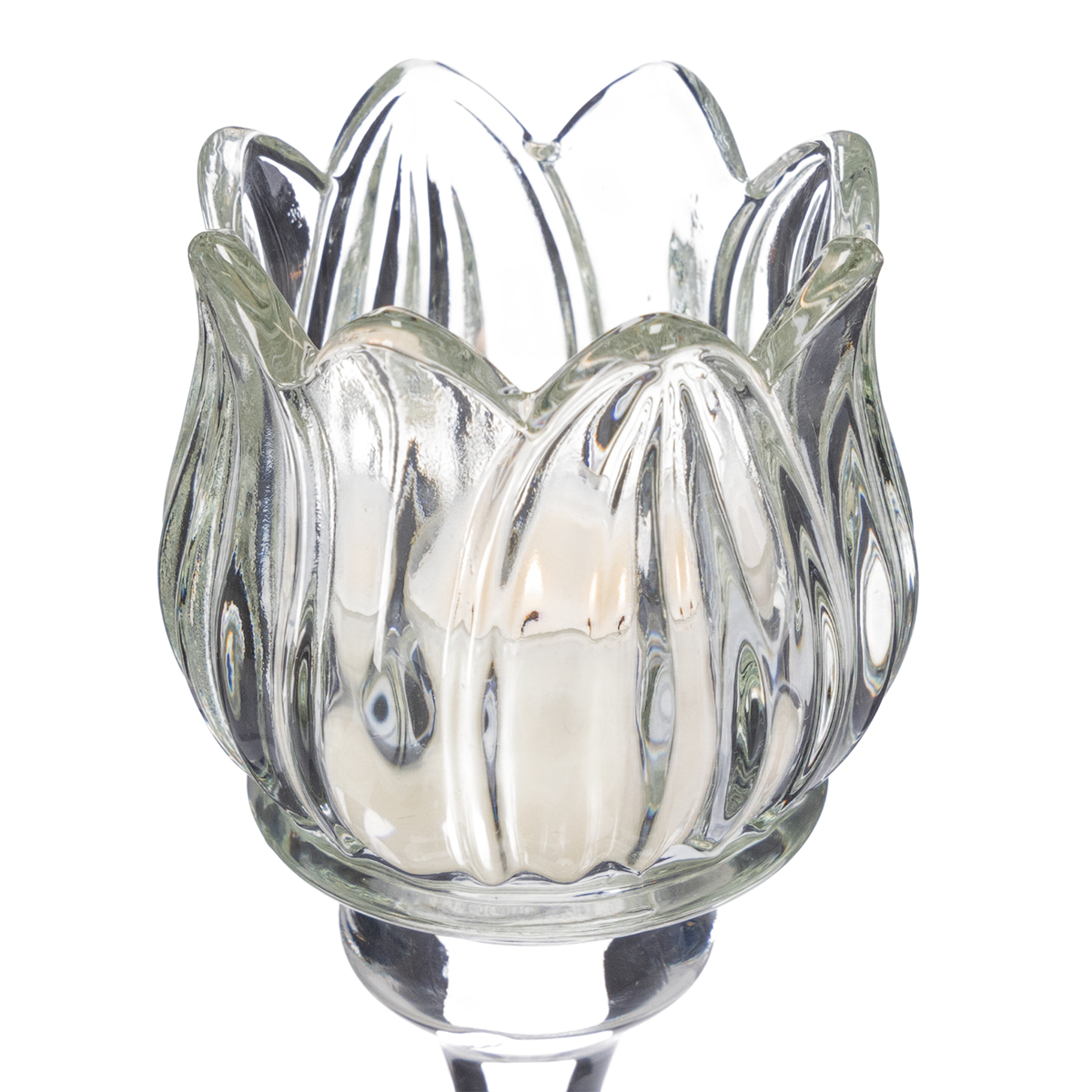 High-quality glass tealight holder in the shape of a flower – an elegant home accessory