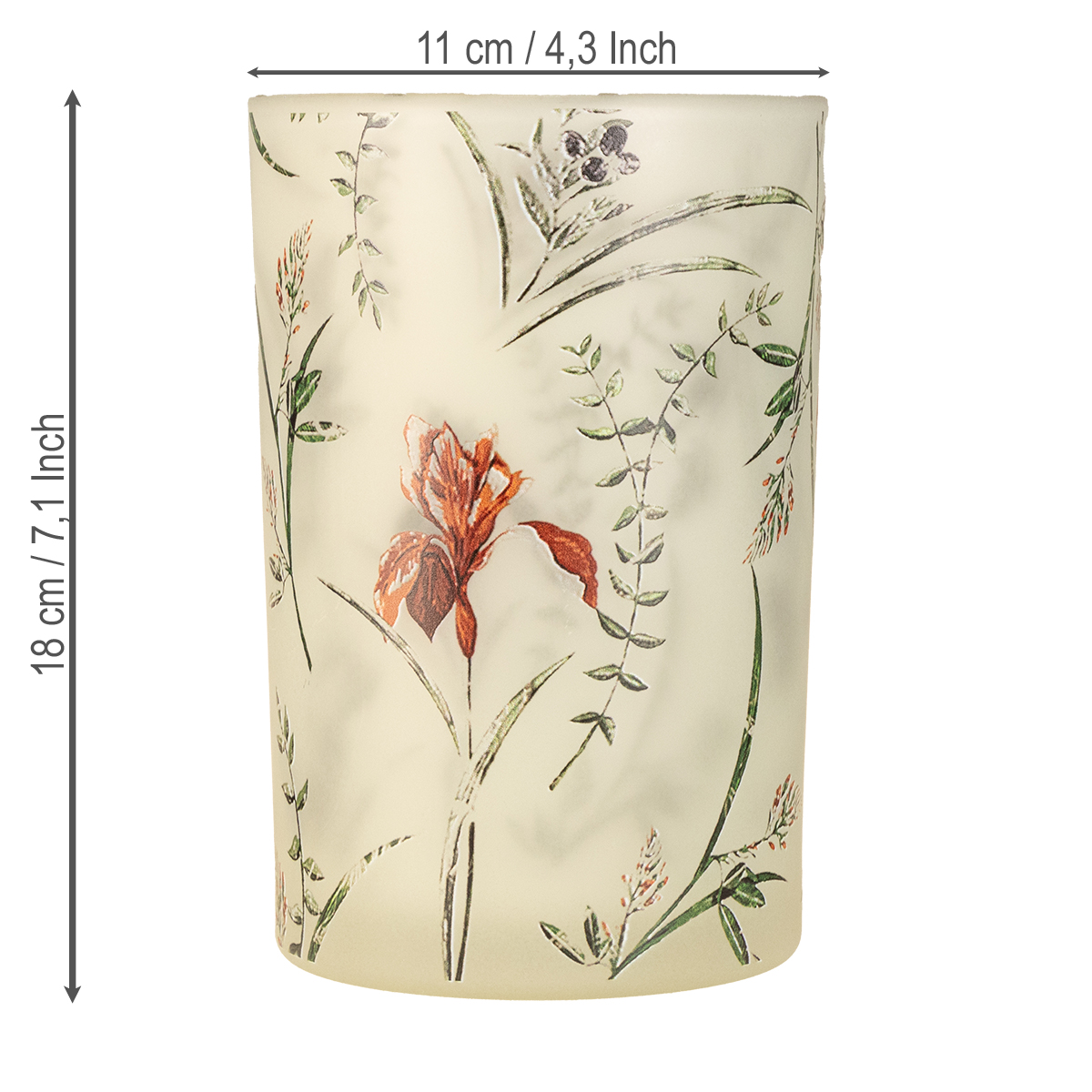 The glass tealight holder with its floral design is more than just a candle holder – it's a statement accessory for your home. The delicate floral pattern in beige, green, and red gives it a natural and harmonious look that complements vintage or country-style decor beautifully. The handcrafted design ensures that each holder is unique. Measuring 18 cm in height and 12 cm in diameter, it offers ample space for both standard tealights and decorative candles. The high-quality glass allows light and warmth to shine through beautifully – an effect that looks particularly magical in dim light.