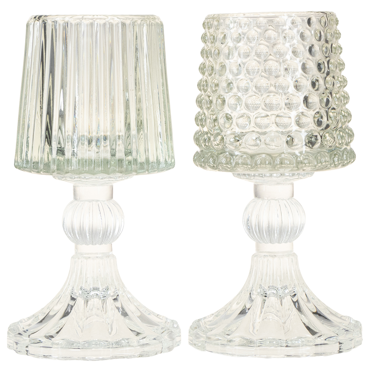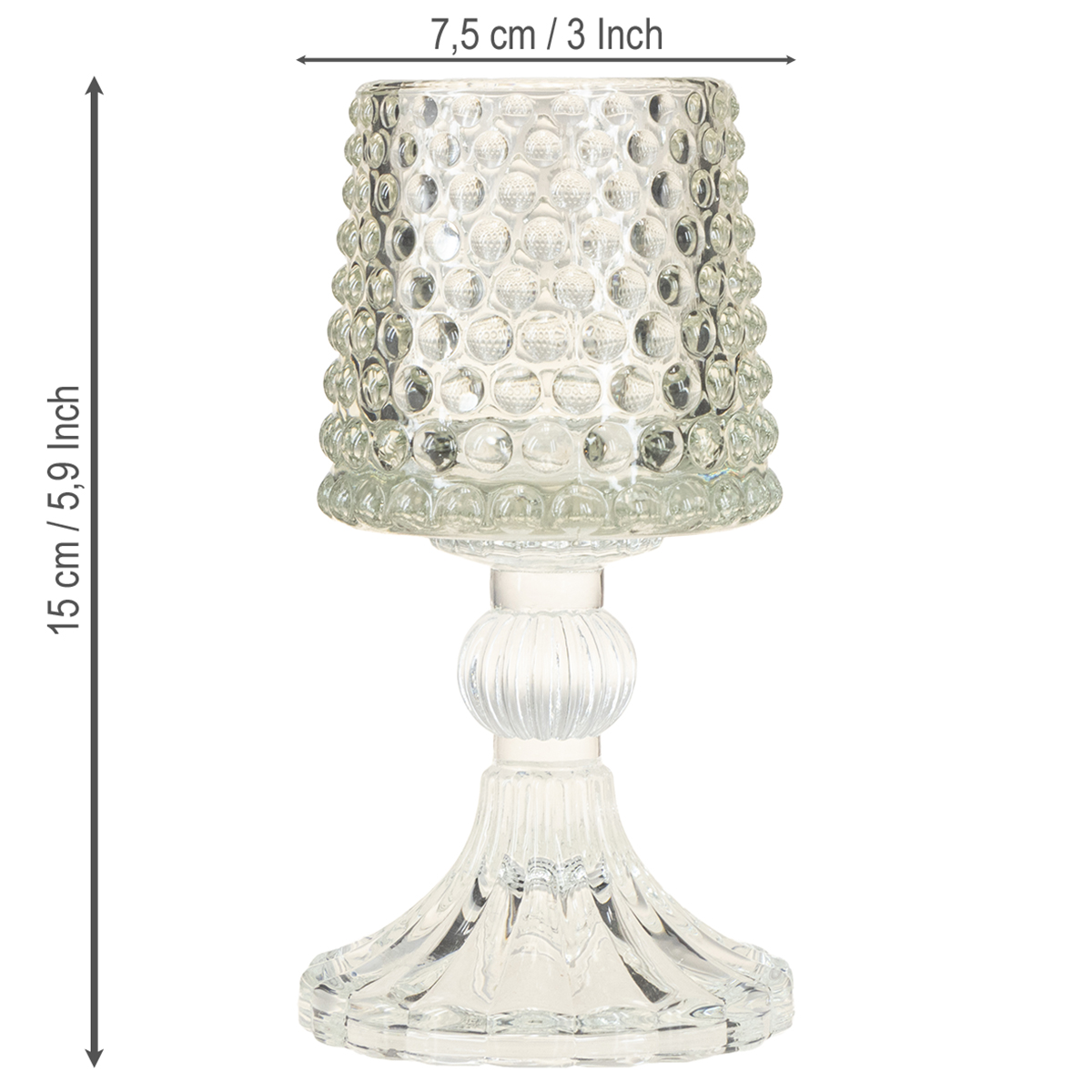 Product name: Glass tealight holder with base dots and grooves H15cm 2pcs