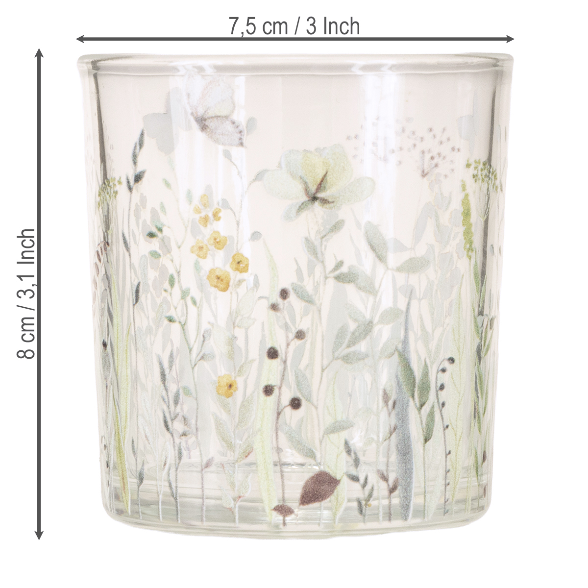 Let your creativity run wild: Combine the lantern with other glass decorations such as small vases or bowls to create harmonious displays. Individual tea lights or LED candles also shine beautifully thanks to the transparent design. Planning a garden party? Arrange several of these lanterns along a garden path or on wooden trays – the effect will delight your guests! The floral and butterfly motif brings a touch of springtime lightness to your arrangements. Simply a harmonious companion for every season and every occasion.