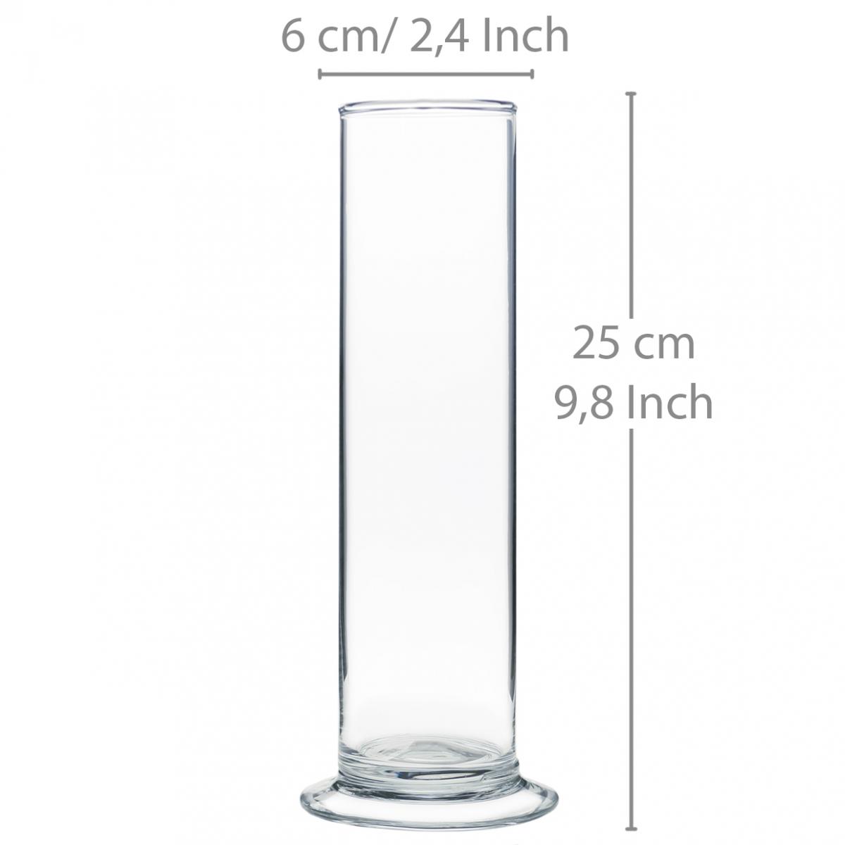 Glass vase with base, clear, Ø6cm, H25cm