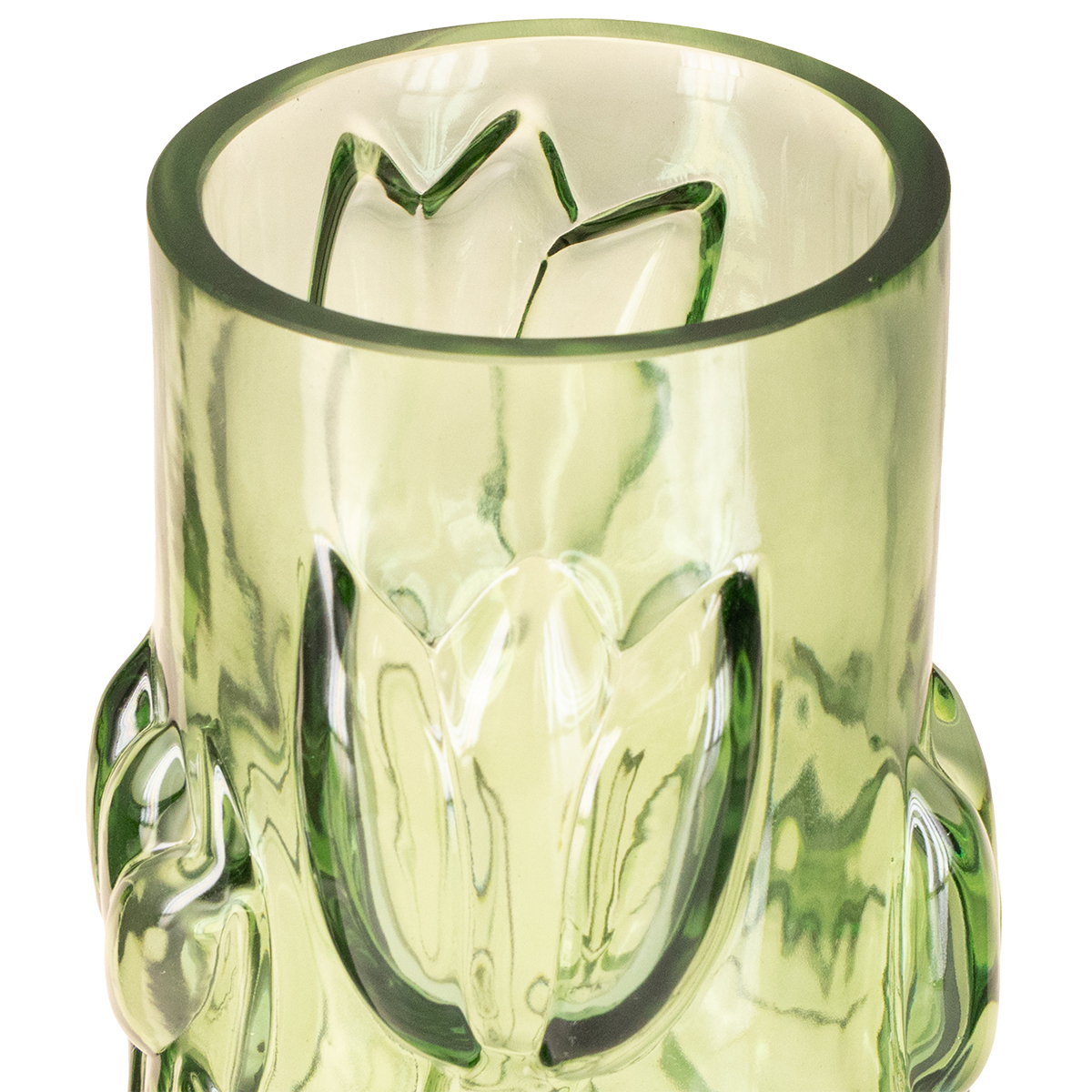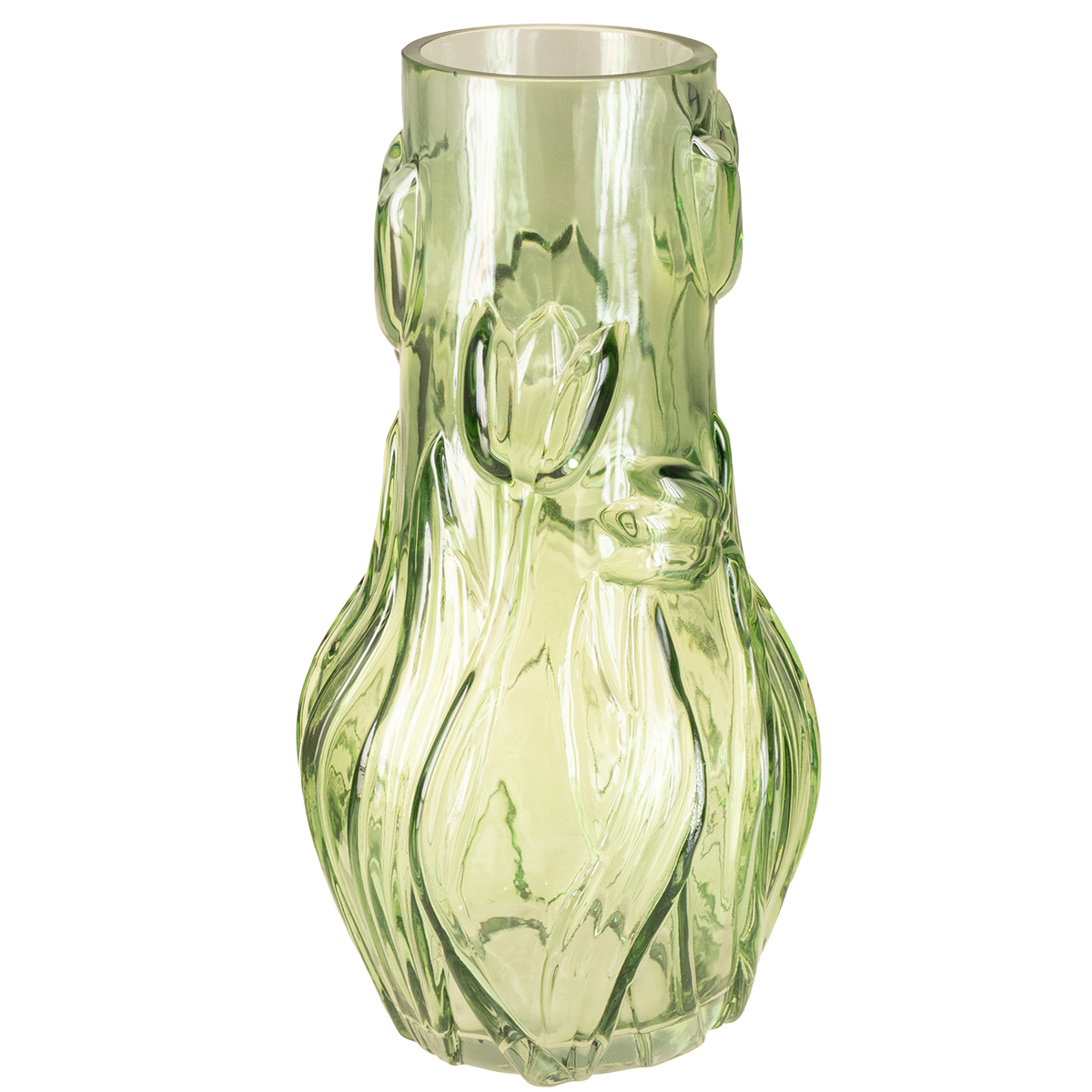 Glass vase with embossed tulip design for harmonious room design, 30cm