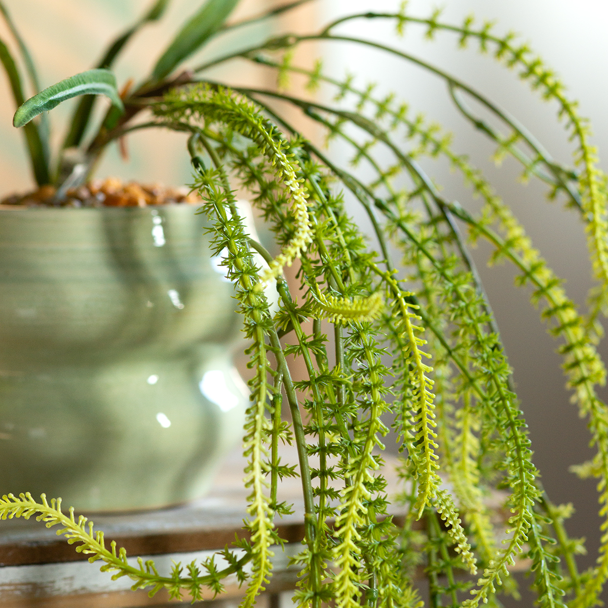 With its graceful shape and delicate, fine bristles, this green artificial foxtail millet plant is a true all-rounder. Its 114 cm length makes it particularly attractive for all hanging arrangements. The bristles are made of high-quality polyester and plastic, ensuring the plant is not only durable and easy to care for, but also retains its structure and color intensity for many years.