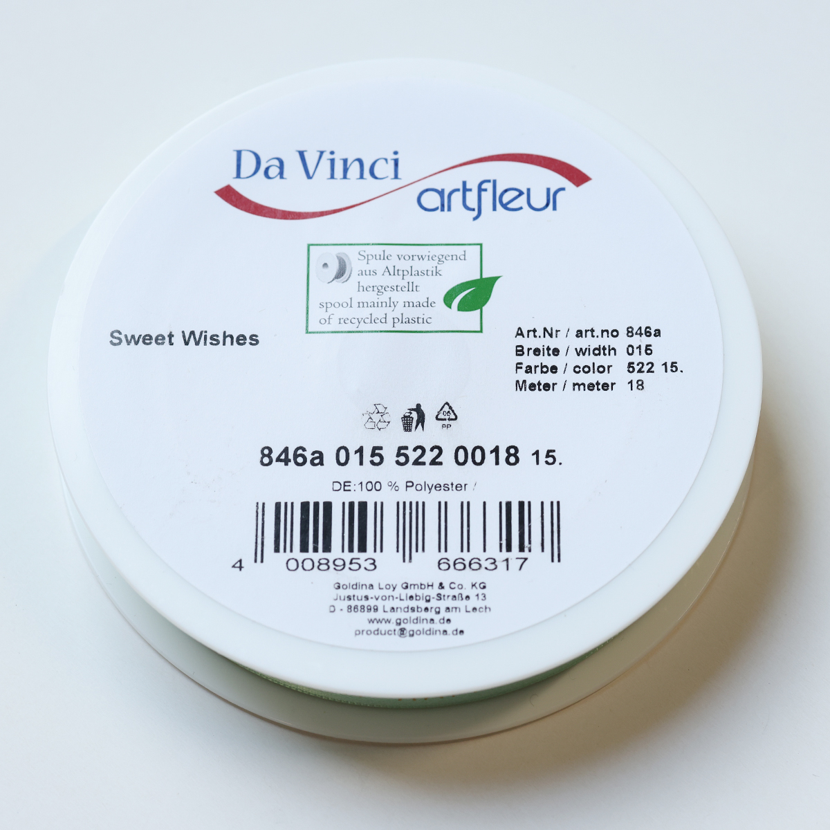 This decorative ribbon impresses not only with its charming design but also with its high quality. Made from 100% polyester, it is durable, tear-resistant, and therefore ideal for a wide range of uses. The roll offers a generous 18 meters of length, perfect for a variety of projects. Its practical width of 1.5 cm allows for precise and attractive accents – whether for large gifts, small tokens of appreciation, or creative DIY projects. The fresh green color, reminiscent of spring meadows, is particularly striking. The simple yet expressive "Happy Birthday" lettering in elegant gold adds a festive touch without being overpowering. A true all-rounder, it's both practical and stylish. This ribbon truly shines when combined with gift wrap in natural tones, bright white, or soft pastel colors. For those who want to combine green with other decorative products, we offer many suitable options – from artful silk flowers to neutral raffia ribbons.