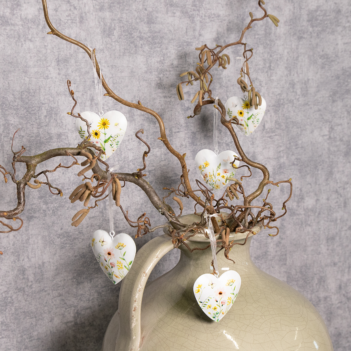 How about a wall decoration that brings warmth, charm, and a touch of romance to your home? Our heart pendants with floral patterns fit perfectly into any living space and create a wonderfully inviting atmosphere! Do you love the natural look and want to give your home that certain something extra? Then you'll be delighted with these heart wall hangings. The delicate floral motifs are not only beautiful to look at but also create a playful harmony between romance and country style. Whether as an eye-catcher in the living room, a welcoming touch in the entryway, or a charming highlight in a flowerpot – these pendants are the perfect little detail to complete your decorating style. The white, slightly glossy metal surface gives any room a modern yet timeless flair. And the best part? You receive six of these lovingly designed heart pendants, which you can mix and match to your heart's content!
