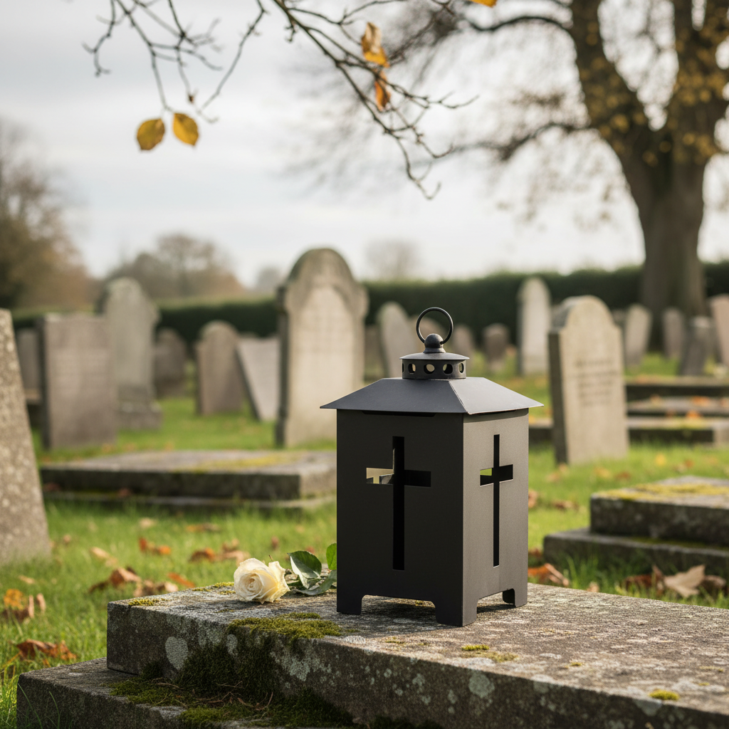 - Metallic grave light with crosses for meaningful symbolism