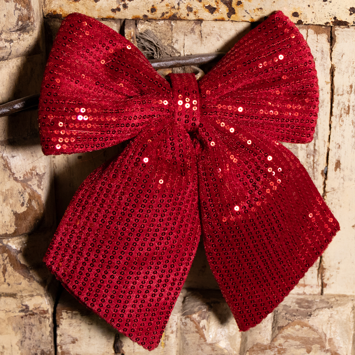 Large velvet bow in dark red – elegance and sequins with a festive shine