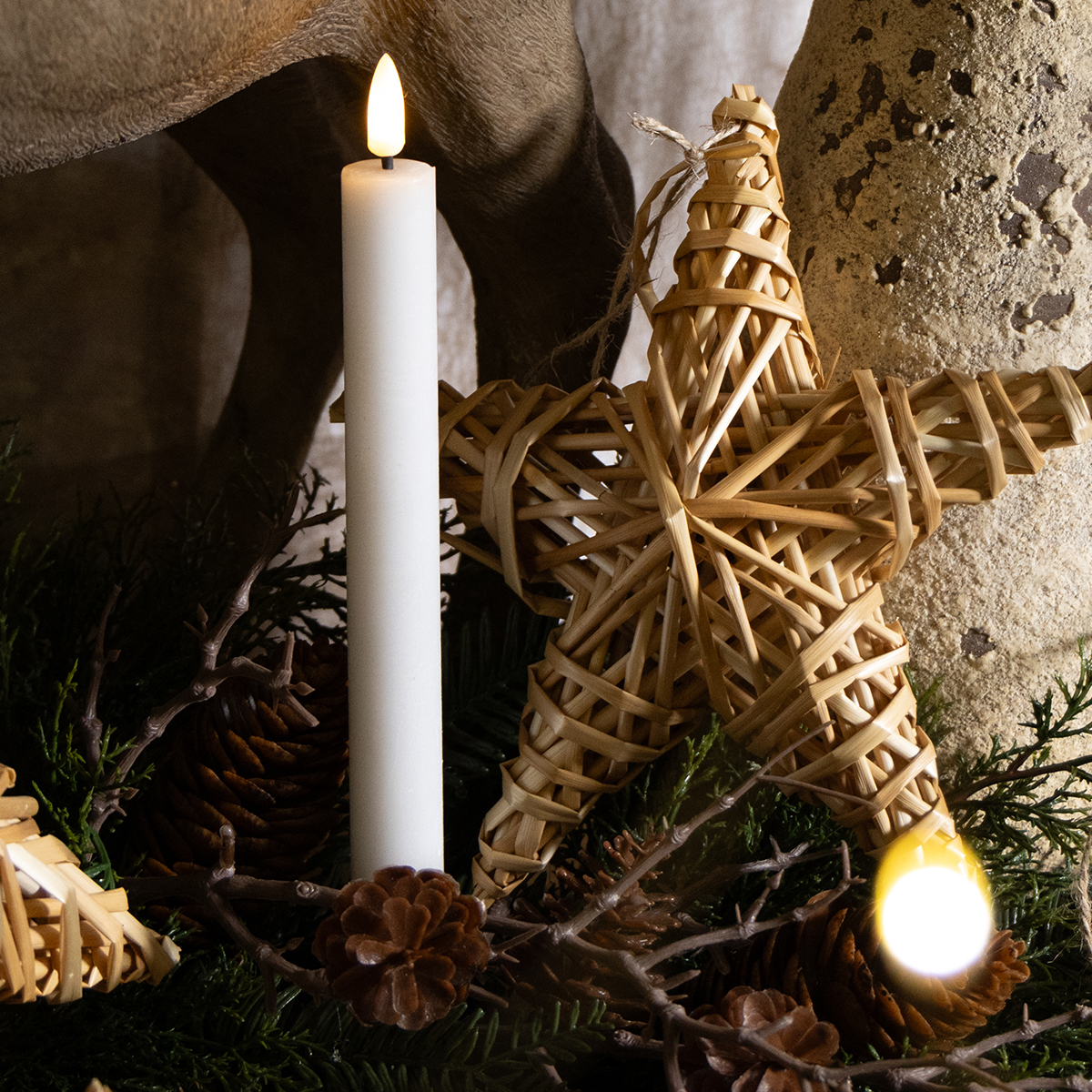 Do you love the warm glow of candles but don't want real flames? Then our white LED taper candles are the perfect choice! With their timeless design, made from real wax, and a pleasant warm white light, these battery-operated LED candles create an atmospheric ambiance in any setting. Whether for romantic dinners, celebrations, or cozy evenings at home, these LED candles with a flame effect are versatile and safe. No burn marks on the table runner, no wax stains, and no soot—just relax and enjoy the safe candlelight. Combine the 24.5 cm tall candles with decorative candelabras or an Advent wreath, and you'll be amazed at how elegantly they complement your decor.