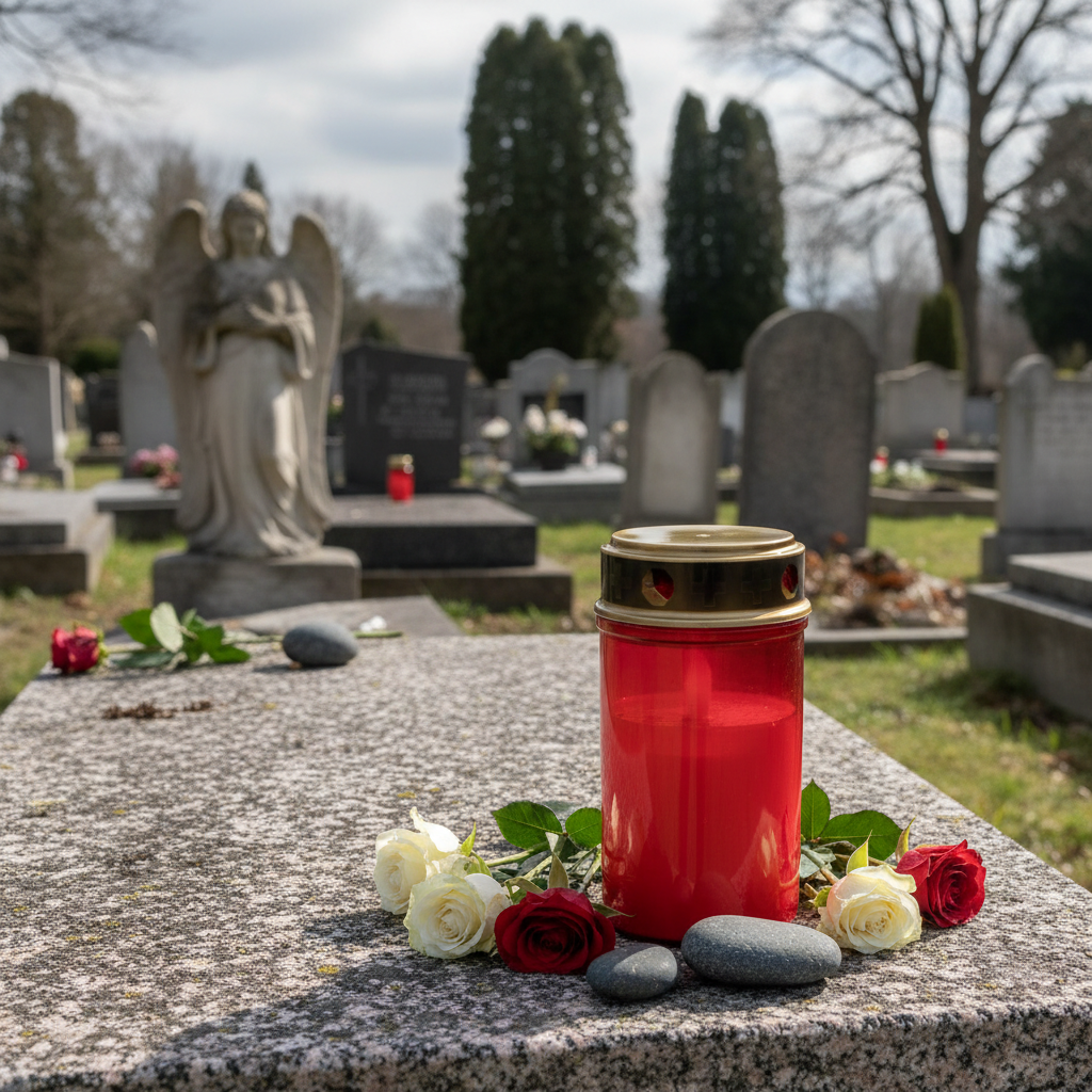 Our LED grave light in a brilliant red combines tradition and modernity for a dignified tribute to your loved ones. This innovative grave candle not only offers a weatherproof and long-lasting alternative to conventional cemetery candles, but also impresses with its convenient timer function. With a vessel height of approximately 12.5 cm, it is optimally dimensioned and emits a warm, calming light that provides comfort in both spiritual and everyday moments. Powered by two C batteries, this LED grave light is not only environmentally friendly but also versatile. Whether as a decoration in the cemetery or in personal memorials, this battery-operated LED grave light creates a contemplative and emotional atmosphere.
