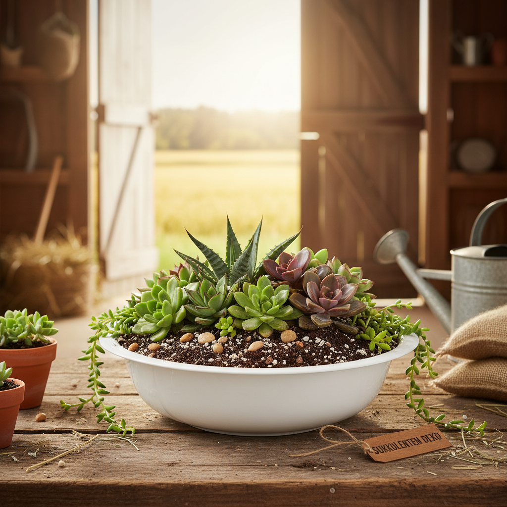 The decorative bowl is not only suitable for planting (it is best to cover the flower bowl with foil), but also for table arrangements that you want to give a slightly rustic touch.