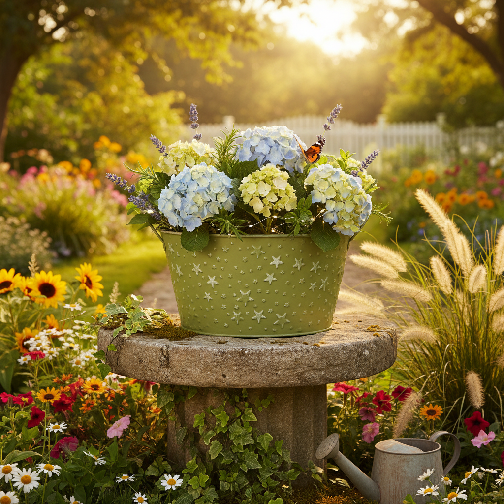 This green metal bowl Ø20cm with handles combines functionality with a festive design. Whether as a plant bowl, arrangement bowl or for storing small items - this versatile accessory is not just a planter. It is also a decorative element that will show off your plants in the best light and give your living space a personal touch. Its attractive green color makes the decorative bowl with handles an eye-catcher, and the green decorative bowl with stars is perfect for presenting Christmas arrangements in style.