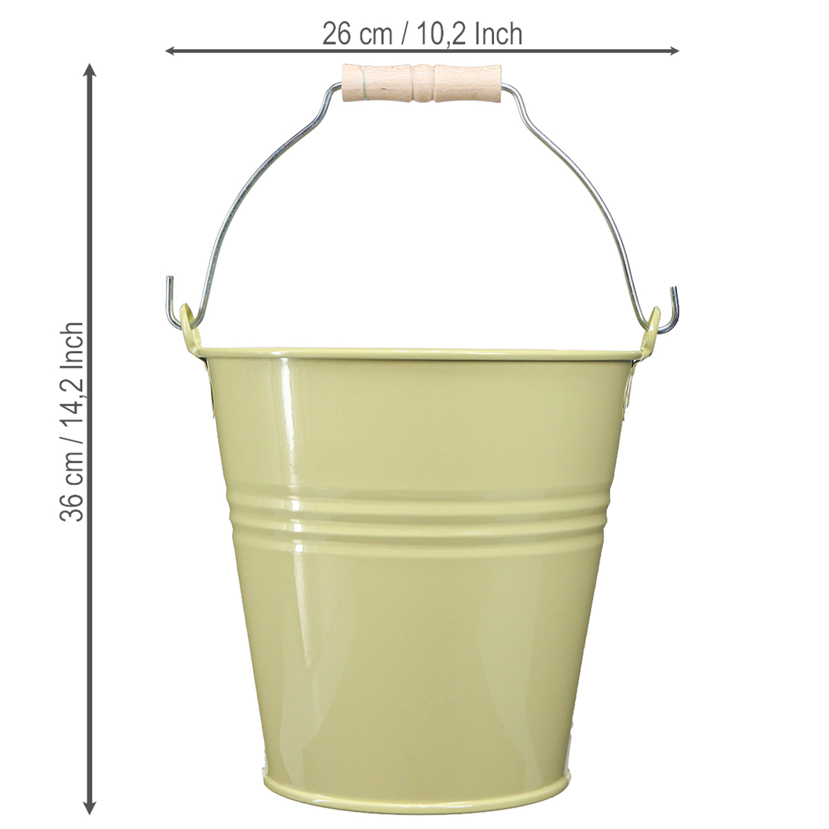 Our decorative metal bucket impresses with its attractive green-yellow paint finish and is equipped with a movable handle and a wooden grip, which is not only practical but also underlines the nostalgic style. The elegant decorative grooves give the flowerpot a charming touch that can be wonderfully integrated into various interior design styles. This decorative bucket is particularly impressive in the country house style as a stylish element that can be combined with natural materials or rustic furniture.
